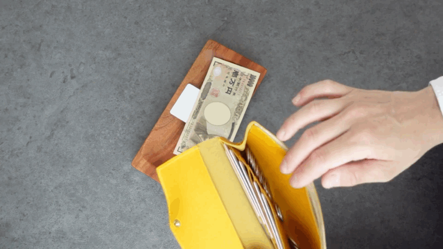 ②「立ち並ぶカード」と「投げ入れる小銭」が小型財布の課題を解決!