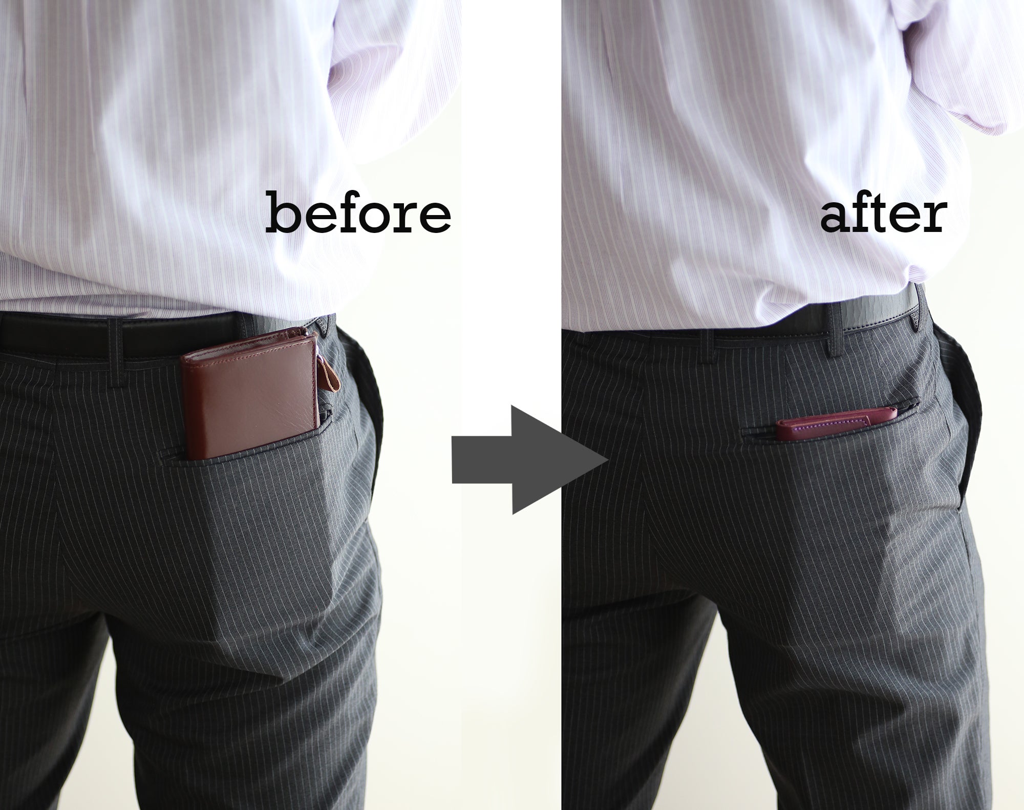 よくある「厚さ○○ミリ!」 という財布も、カード、小銭、紙幣をある程度入れちゃうとどうしても厚みは増してしまいます。