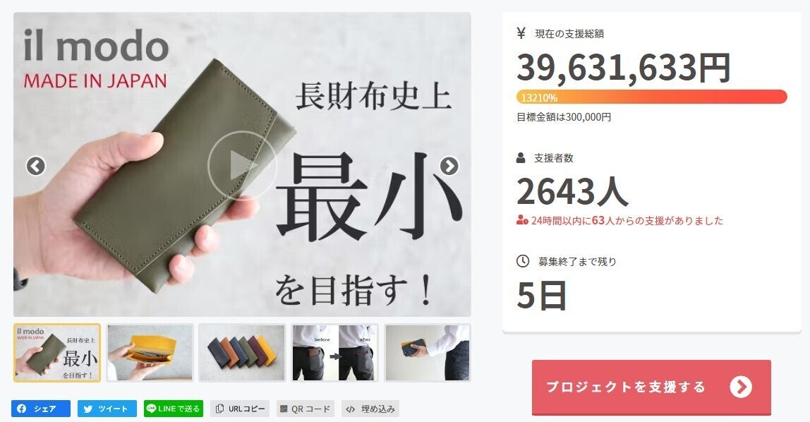 長財布最小を目指した「il modo(イルモード)」募集終了まで残り5日となりました!