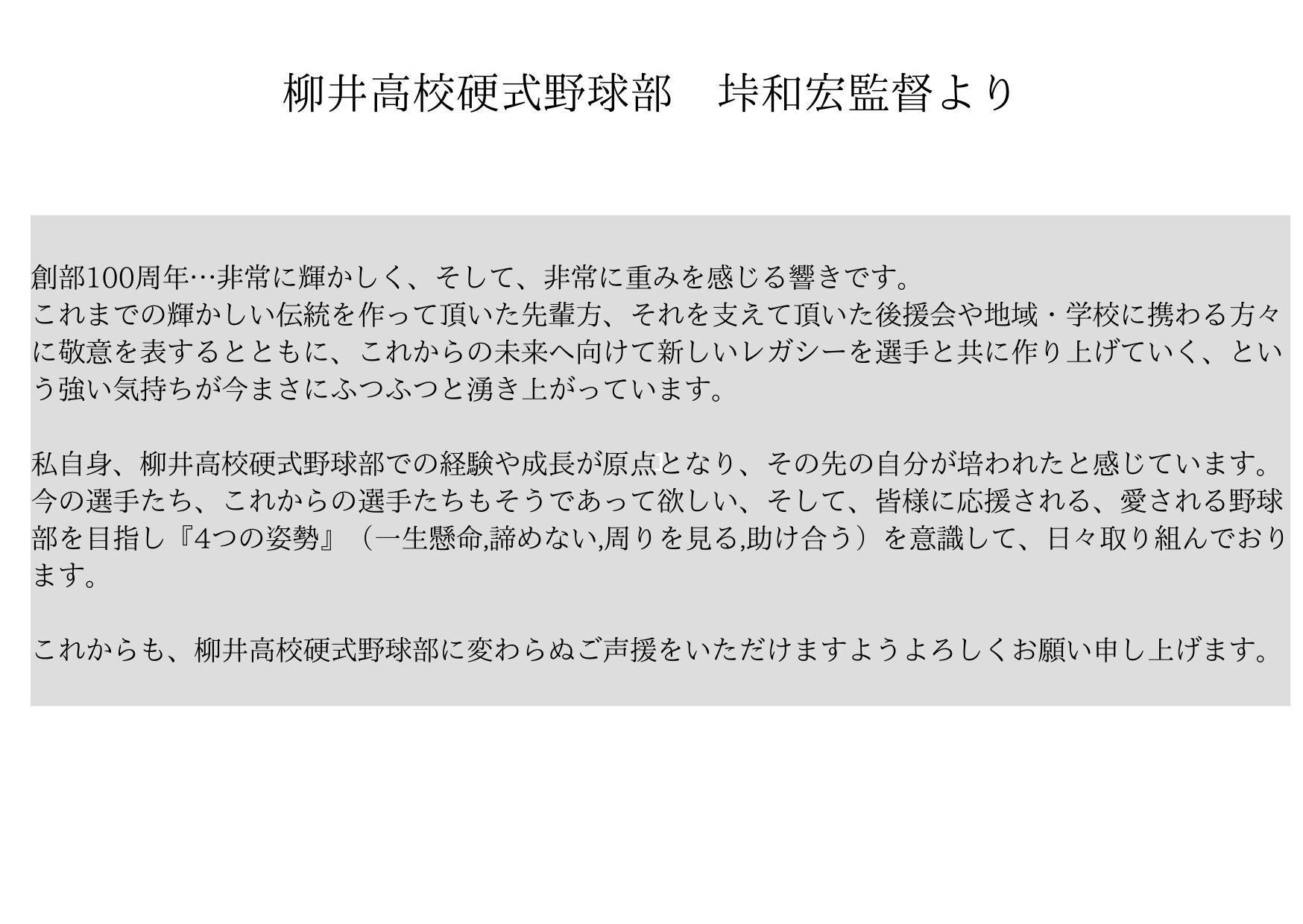 柳井高校硬式野球部の更なる発展のために、ご支援のほど、よろしくお願いいたします。