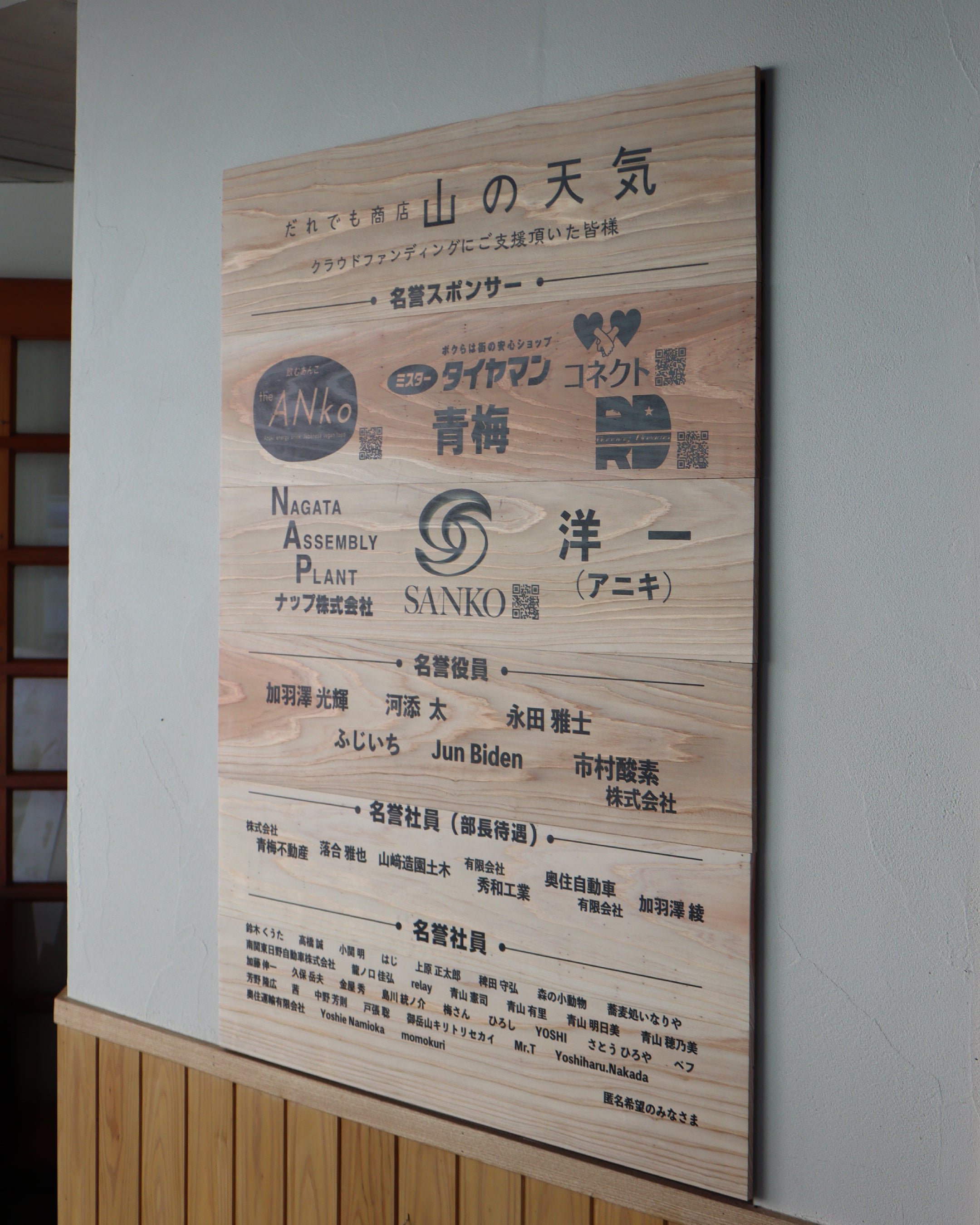 ご支援いただいた皆様のお名前看板も、昨日掲示開始しました!