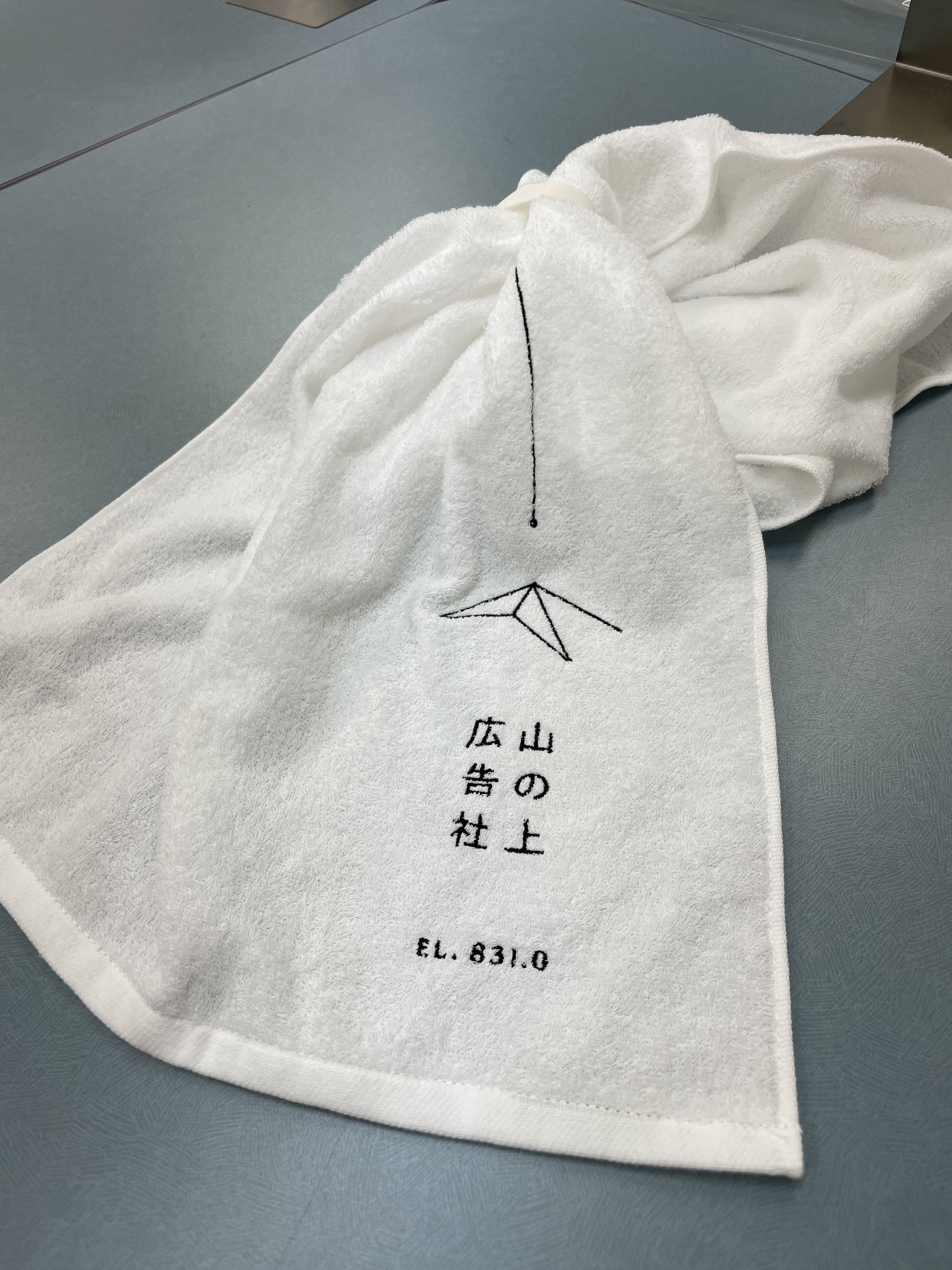 今日はホットマンさん&山の上広告社のコラボタオルの試作品ができたとのことでお打ち合わせに行ってきました。まずは、刺繍がとっても綺麗に入っていることにびっくり!山の上広告社の繊細なロゴがうまく表現されていて、いい仕上がりです!これから、ループの位置や長さ、ロゴの位置を調整して、本発注に進みます。期待以上の仕上がりなので、みなさまお楽しみにお待ちください!12日に完成予定の山の天気の工事もまさに佳境に入っています。こちらも本当に丁寧な作業をして頂き、予想以上の仕上がりです!クラウドファンディング100%達成まで、まだまだこれから、ここからが正念場です。ぜひいいね!やシェア、拡散にご協力ください!