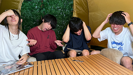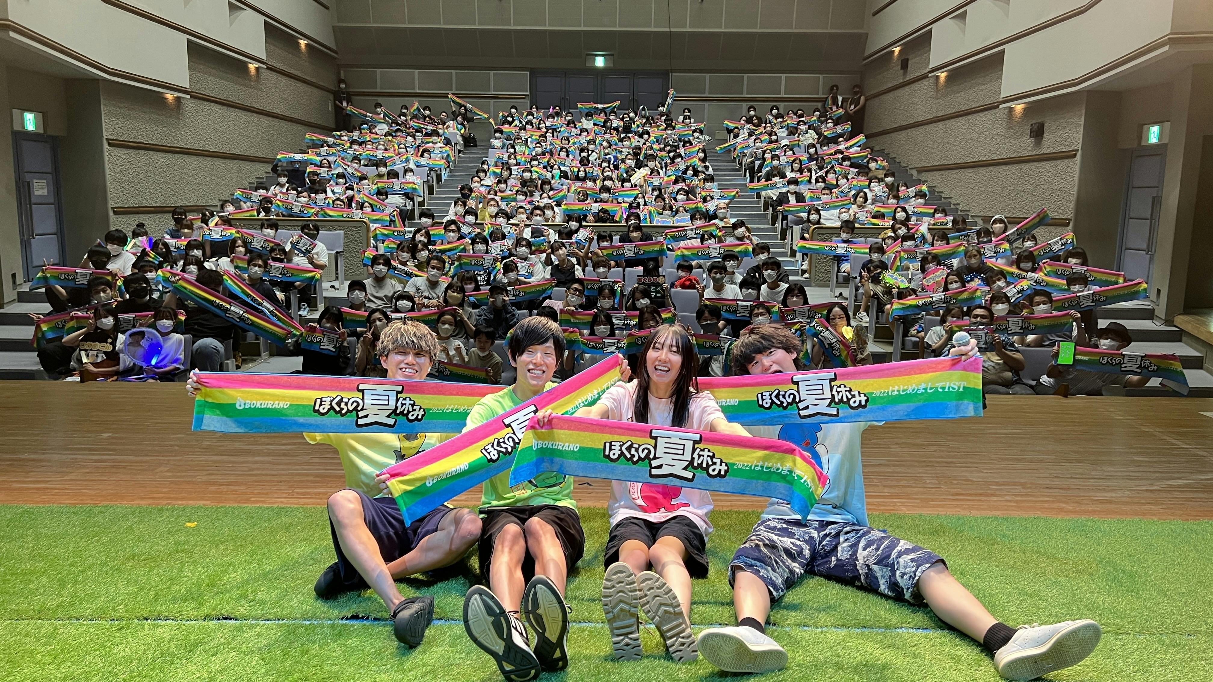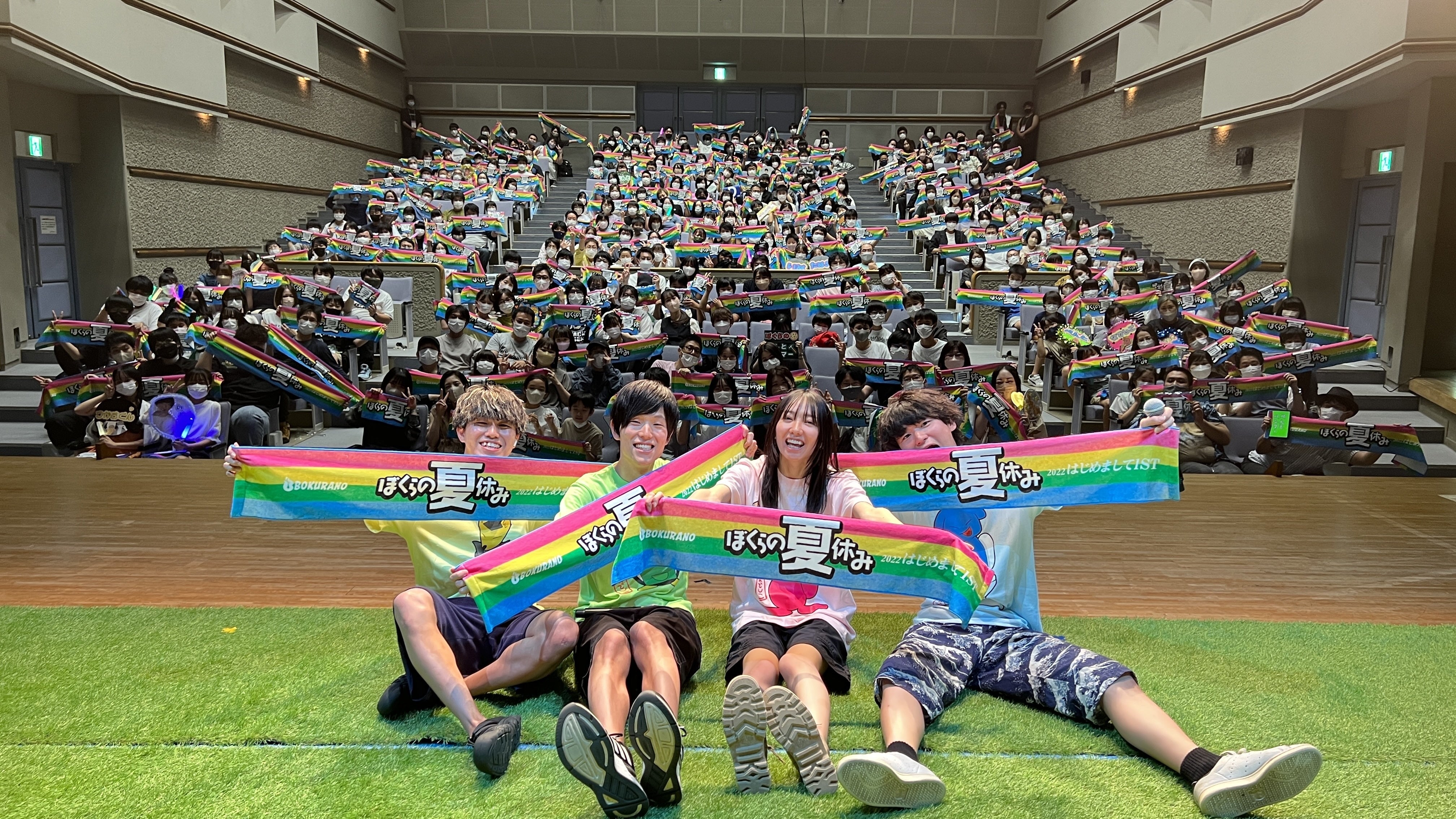 2022/08/24 11:57「ぼくらの夏休み2022~はじめまして1st~」無事開催!!2022年8月20日に「ぼくらの夏休み2022~はじめまして1st~」が無事開催されました!!当日会場にお越し下さった皆様、そしてクラウドファンディングを支援して下さった皆様、本当にありがとうございます。今回のイベントはクラウドファンディングという形でチケットを販売し、イベント制作を行って参りました。ぼくらのキャンプにとって初めてにイベントであり、更にクラウドファンディングということで、支援者の皆様には多くの不安や疑問を抱いたかと思います。ですが、その中でもぼくらのキャンプを信じて下さり、そして支援して下さって本当にありがとうございます。今回のイベントはご来場者様や支援者様、として視聴者の皆様がいて下さったからこそ開催することができ、無事に成功致しました。「いつも支えて下さる視聴者の皆様に恩返しを出来るイベントに」クラウドファンディング募集時にプロジェクト本文に記載した文章です。実際に恩返しが出来たかどうかはそれぞれのお客様の感想次第ですが、今回のイベントで、少しでも笑顔になってくれて、少しでも楽しんでくれて、少しでも来て良かったと思って頂ければとても幸いです。当日、段々と埋まっていく座席を見た時、言葉では表せない程の感動がありました。1席1席にその人の人生があり、その人生の一部に「ぼくらのキャンプ」があり、顔も知らない赤の他人の約300人が「ぼくらのキャンプ」という共通点だけで、松代文化ホールに集まり、同じ時間を共有する。本当に奇跡のような時間でした。ぼくらのメンバー、スタッフ一同、この日のことを決して忘れず、今後も精進して参ります!改めて、ご来場して下さった皆さん!クラウドファンディングを支援して下さった皆さん、そしていつもぼくらのキャンプを応援して下さっている皆さん、本当にありがとうございます!!!今後とも、ぼくらのキャンプの応援をよろしくお願い致します!!!Event Report開演時間となり客電が落ちると、オープニングムービーがスタート!映像の4人がテントを立て中に入ると、ステージに設置されていたテントの中からぼくらのメンバーが登場!ぼくらのメンバーの登場に会場はとても盛り上がりました!4人が立ち位置に付くと最初のMCへ、自己紹介と共にイベントへの意気込みを語りました!イベントでは、クイズやジェスチャーゲームといったお客様も一緒に楽しめる企画やぼくラジ公開収録といった普段の撮影の様子を体感出来る企画、大縄飛びのようなお客様も一緒に熱く応援出来る企画を行いました!イベントの最後には皆様お待ちかねのぼくらのメンバー4人による「でっかいピザ」を披露!「でっかいピザ」が流れると、スタッフとお客様からメンバーへのサプライズで客席にサイリウムの海が出来ました!4人の生歌に会場のボルテージは最高潮になり、アットホームな雰囲気に包まれイベントは終演しました! もっと見る