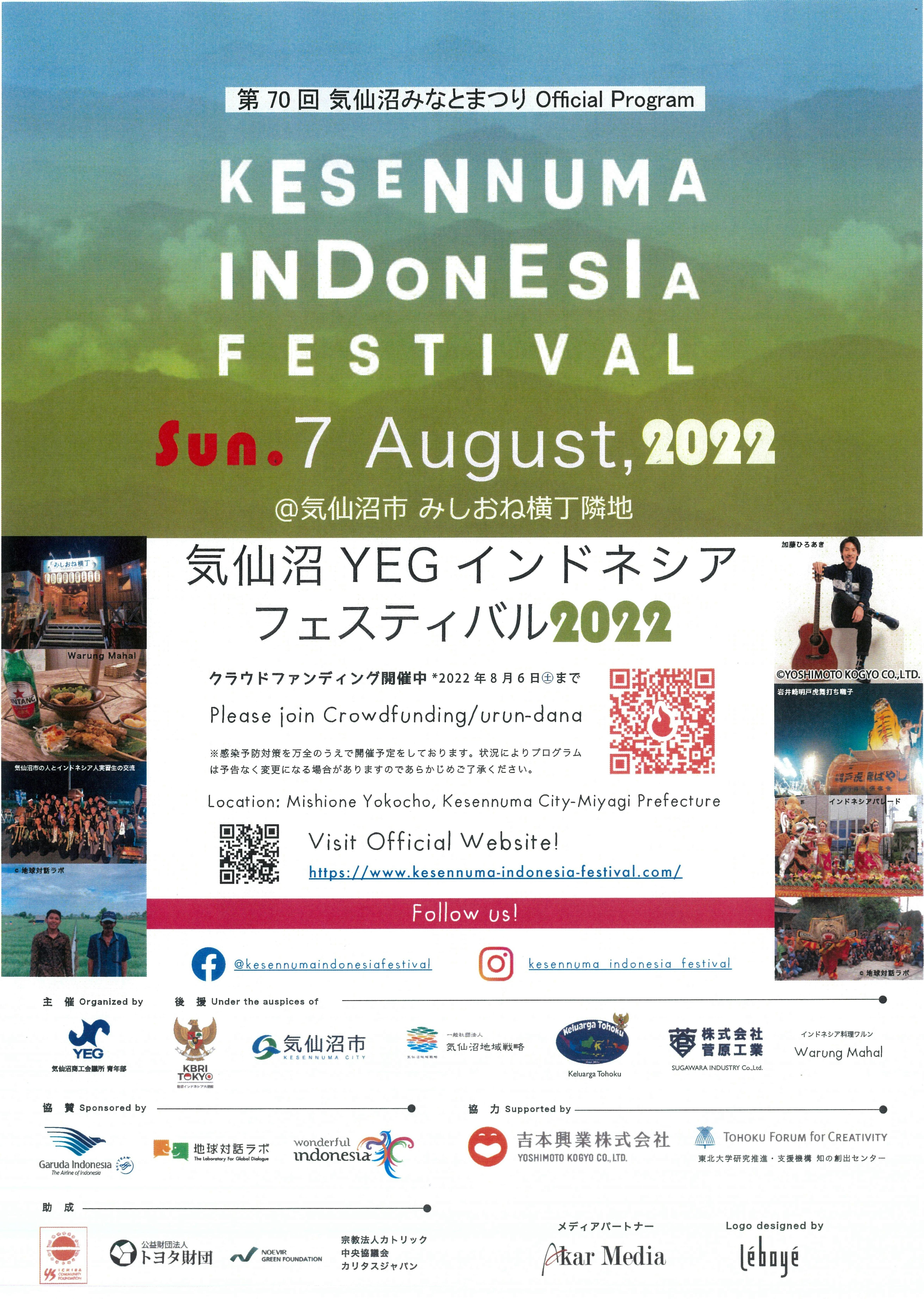 気仙沼みなとまつりでは「大はまらいんや踊り」「打ちばやし大競演」は中止になりましたが、気仙沼YEGインドネシアフェスティバルは感染症対策を行い開催いたします。