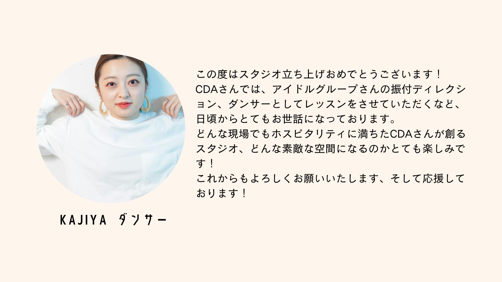 このスタジオを通じてダンサーさんがもっと活躍できるよう、そして支えてくださる皆さんの期待を裏切らないよう全力で頑張って参ります。これからもどうぞよろしくお願いします!