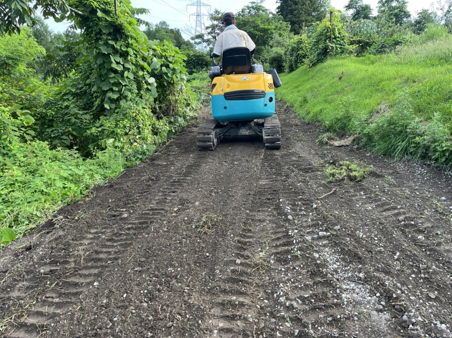 先日14日、砂利が流された農道の復旧作業を重機を使用して行いました。