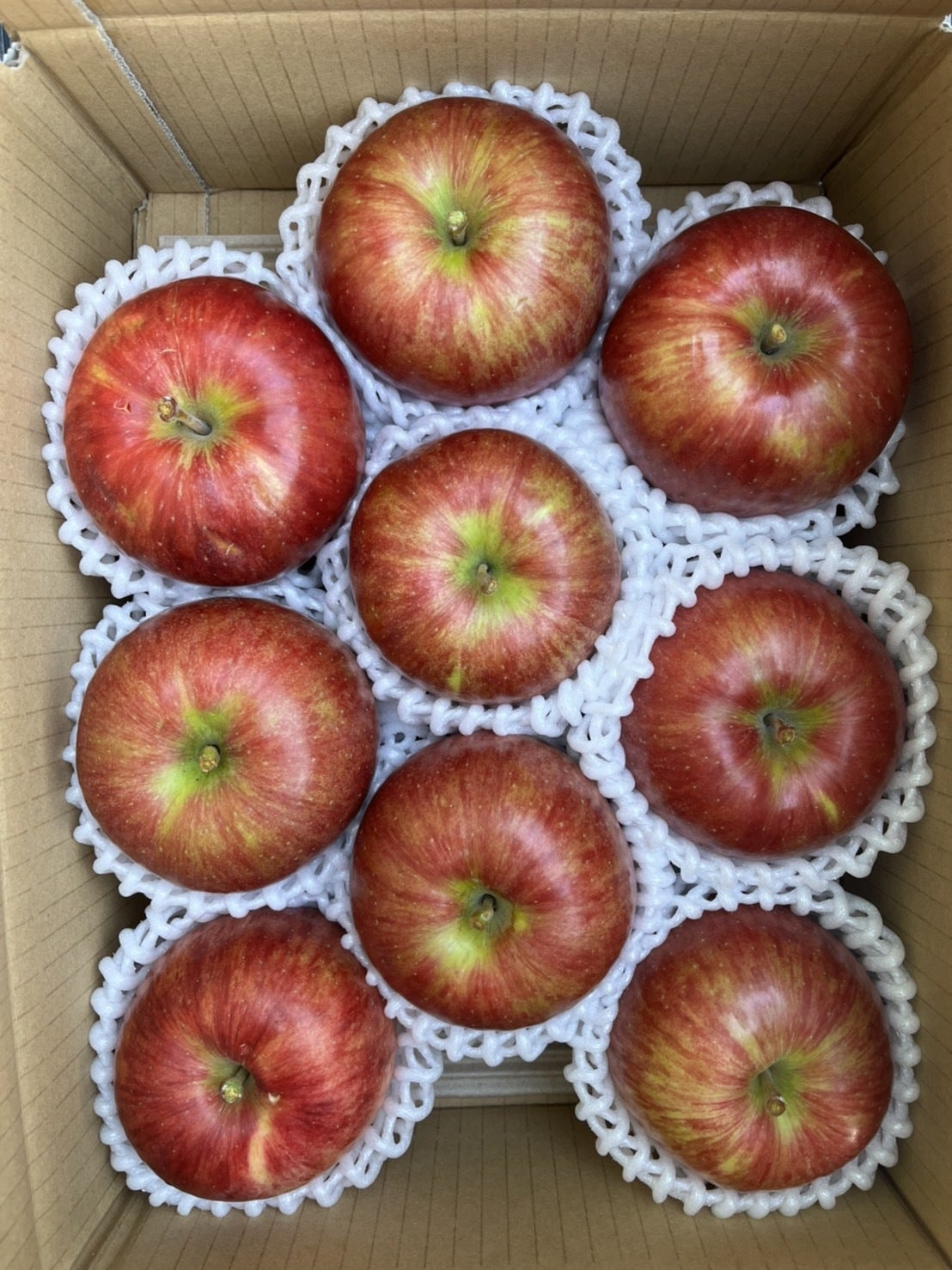 発送時は、選ばれたりんごを1つづつネットで包んでお送りします。