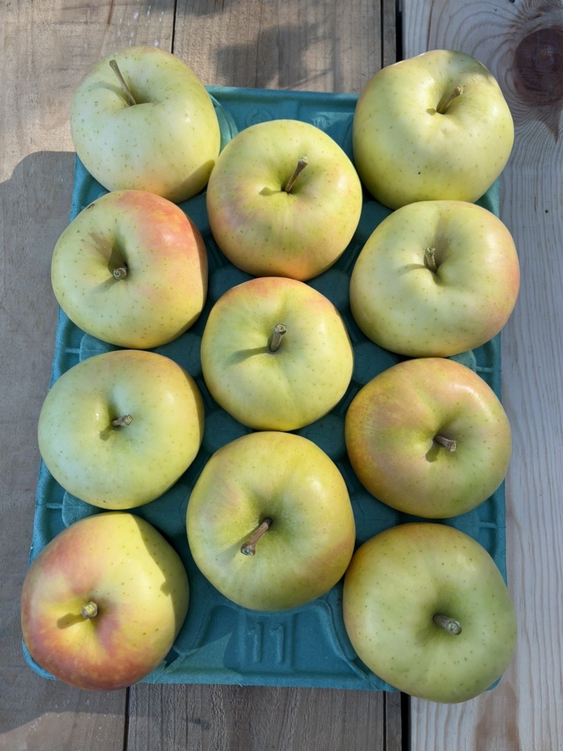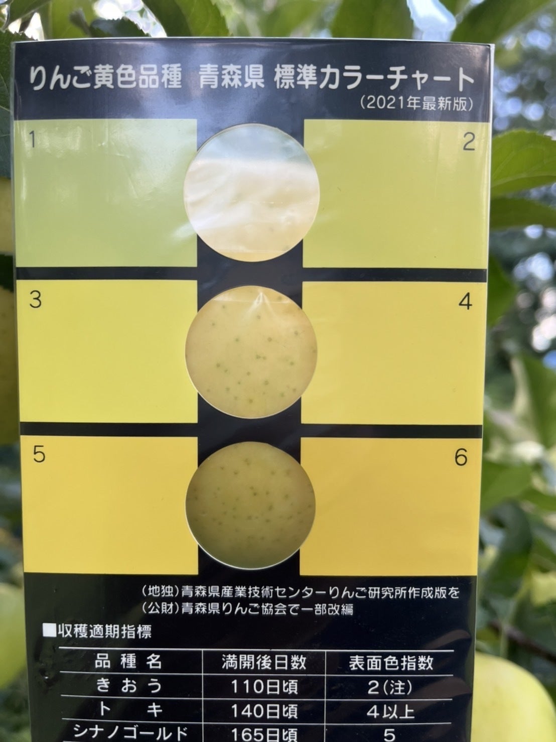 ただいまりんご園では、黄色品種「トキ」の収穫を行なっています。平年では10月1日頃が収穫開始時期なのですが、今年は熟度の進みが約10日ほど早く、前倒しでの収穫となりました。