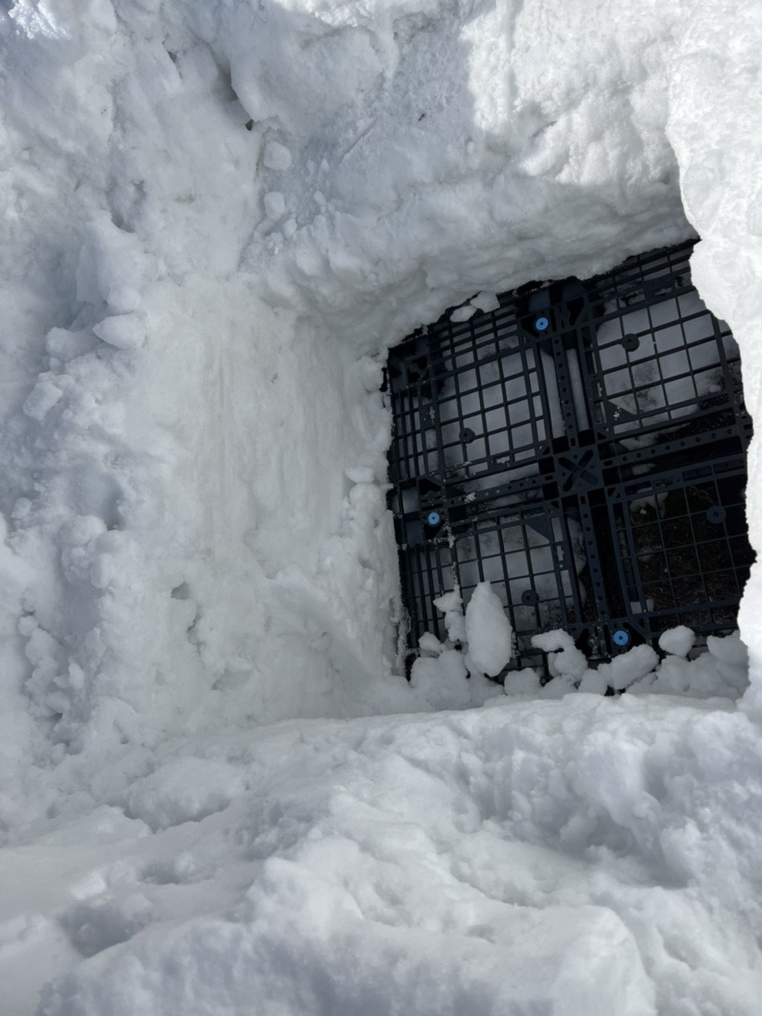 貯蔵場所への入口には高さ約2メートルの雪壁が出来ていました。