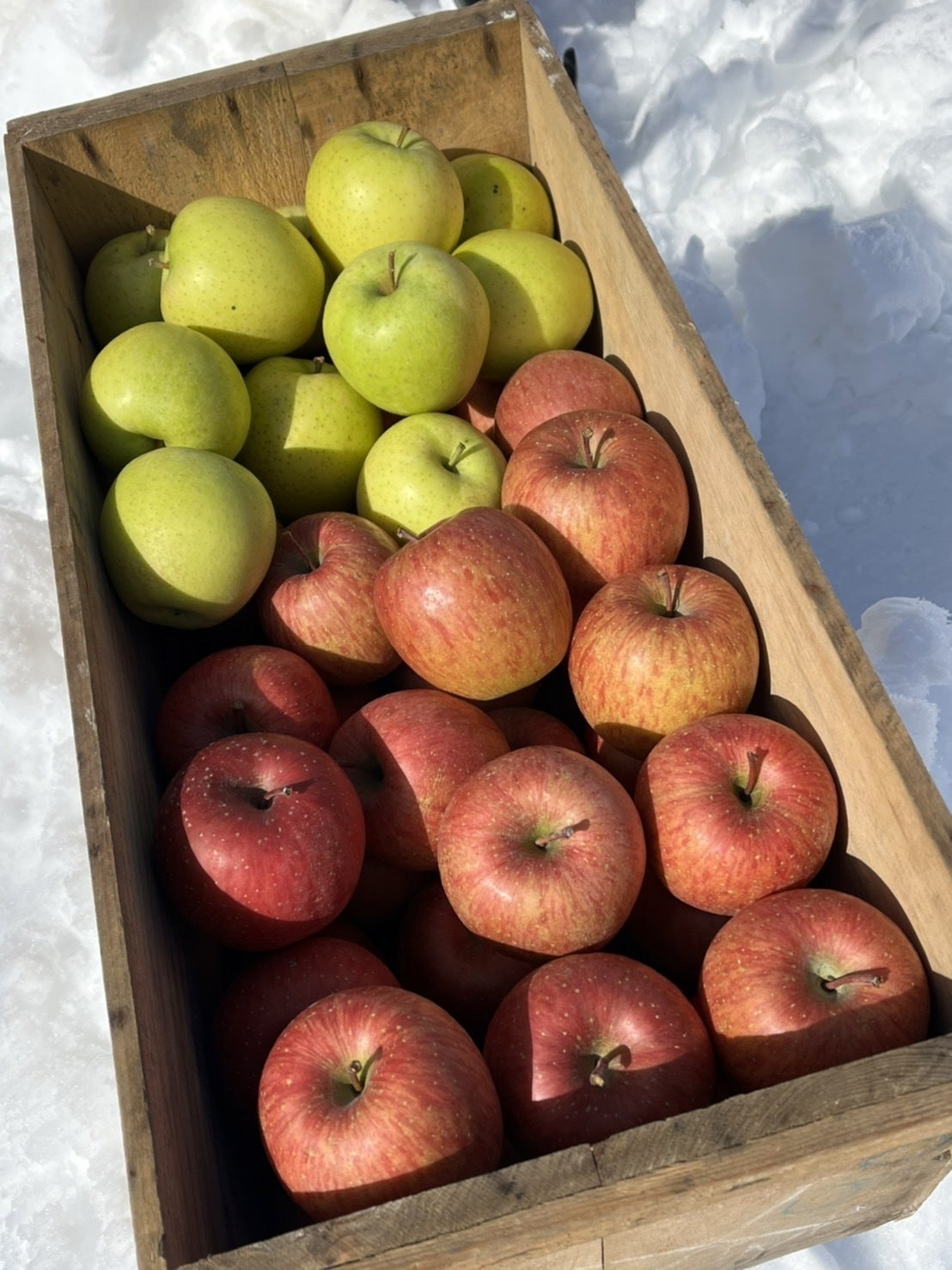 雪の中で味が凝縮されたりんごをお楽しみください。