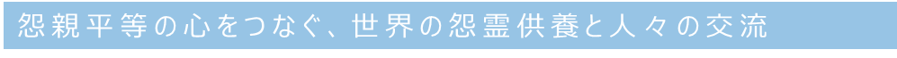 祈りは希望、万物根源のすべて。そして祈りは祭り。祭りでつながる多くの人の思いが「怨親平等」の機縁となり、各々が世の為人の為に与えられた使命を果たす、「自立」を叶え、人種も宗教も超えた「和魂平安」へつなぐ道をひらきます。