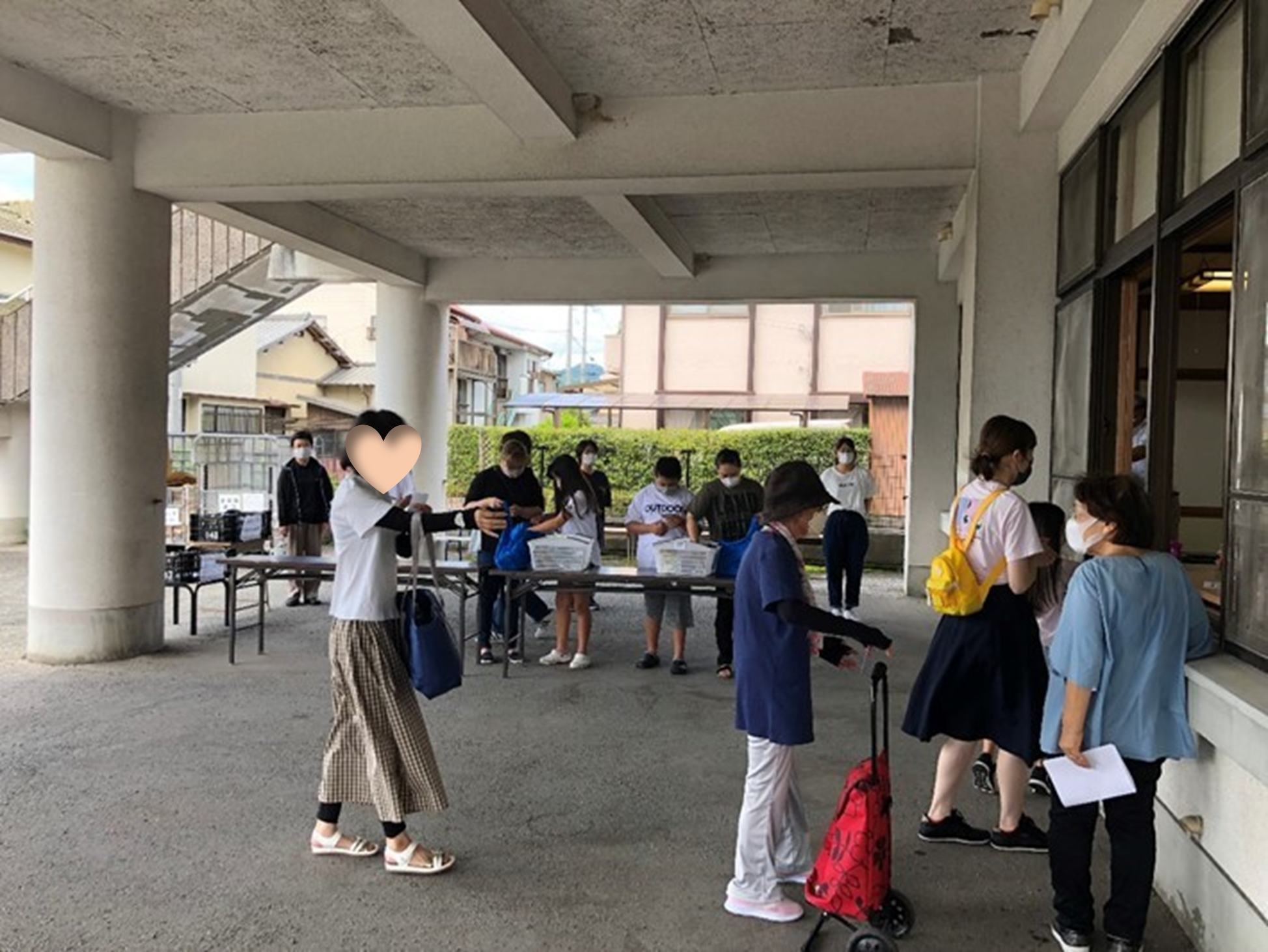 私たちは2019年8月子ども食堂から発想し、「ふれあい食堂・親子料理教室」をはじめました。子どもの食の自立を促すために、親子で料理をつくり楽しく美味しくをモットーに行っていたところ、新型コロナウイルス感染が拡大し2回で休止せざるを得ない状況になりました。そこで地域の二瀬・鎮西地区に学校の協力を得て、母子・父子家庭などに食の支援として弁当配付を行いました。