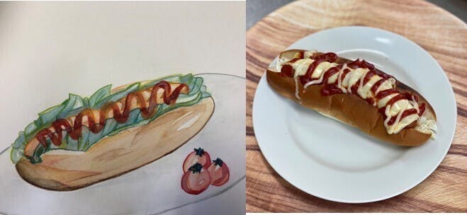 1品目は子ども食堂に参加予定の子どもに絵を書いてもらって作ってみました。見た目は不格好ですが美味しかったです。