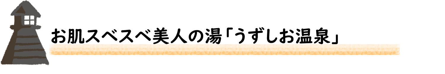 うずしお温泉は、地下1000m約8千万年前の地層から湧き出す非常に優秀な療養温泉です。炭酸水素イオンとよばれる重曹成分が多く含まれ、その含有量は総計5600mgです。