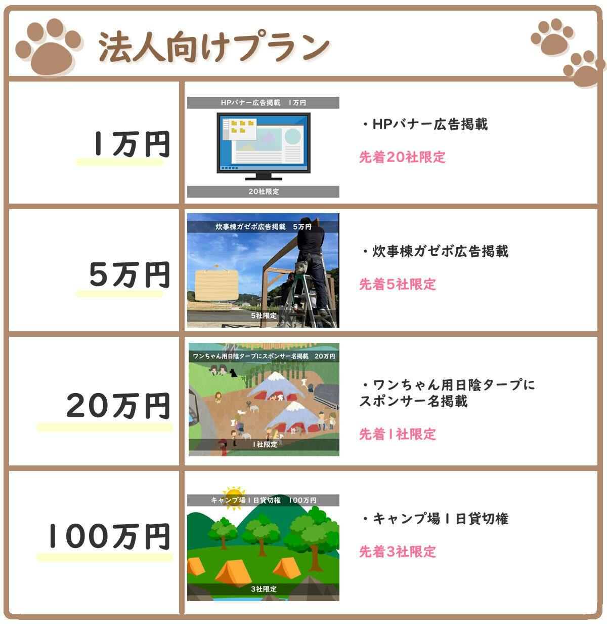 ご支援いただきましたお金はワンともキャンプ場設備増強に使用させていただきます。