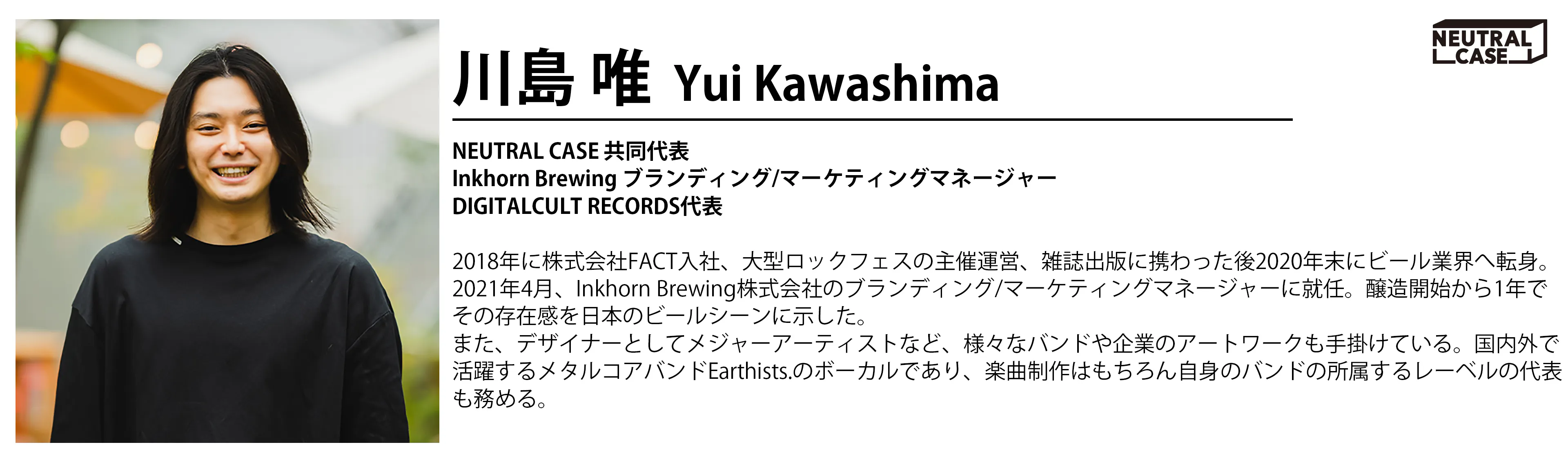 はじめまして。NEUTRAL CASE(ニュートラル ケース)共同代表の川島 唯です。