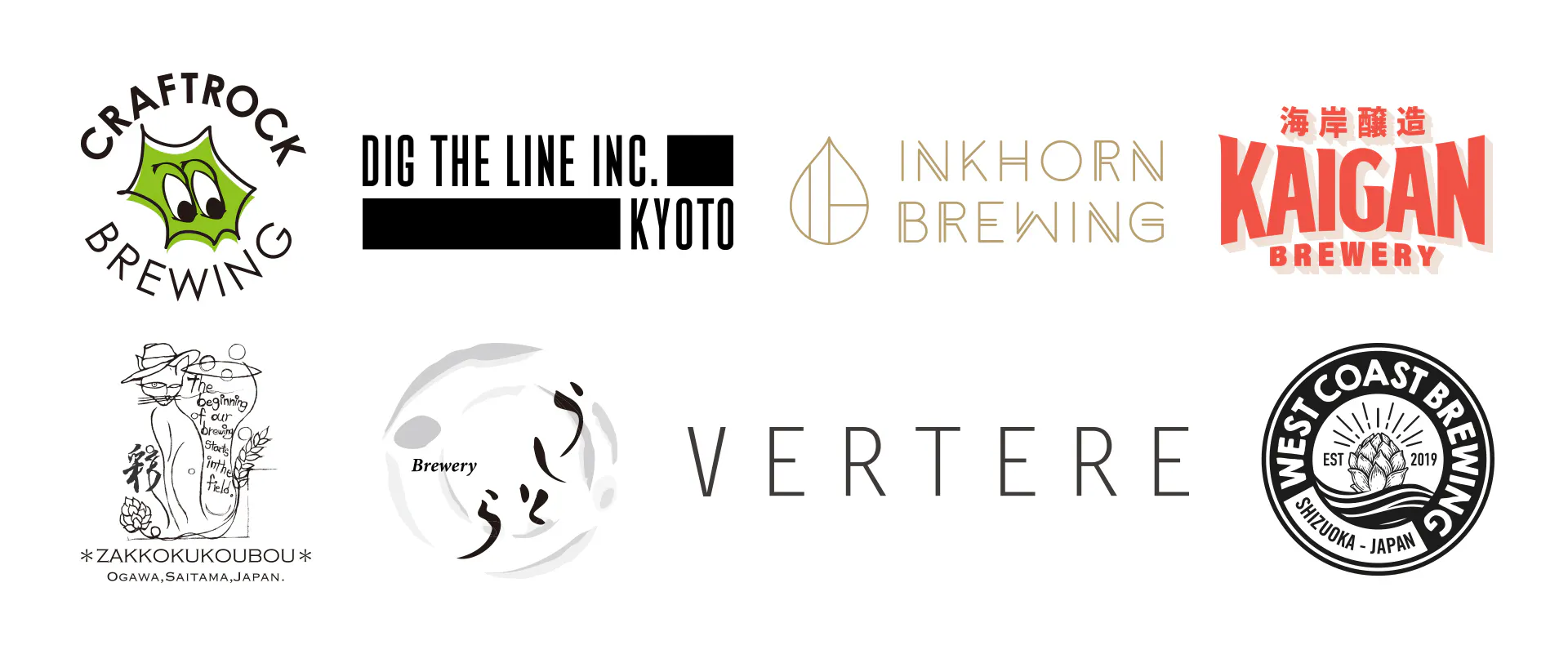 出店:CRAFTROCK BREWING / DIG THE LINE / Inkhorn Brewing / KAIGAN BREWERY / 麦雑穀工房 / うしとらブルワリー / VERTERE / West Coast Brewing