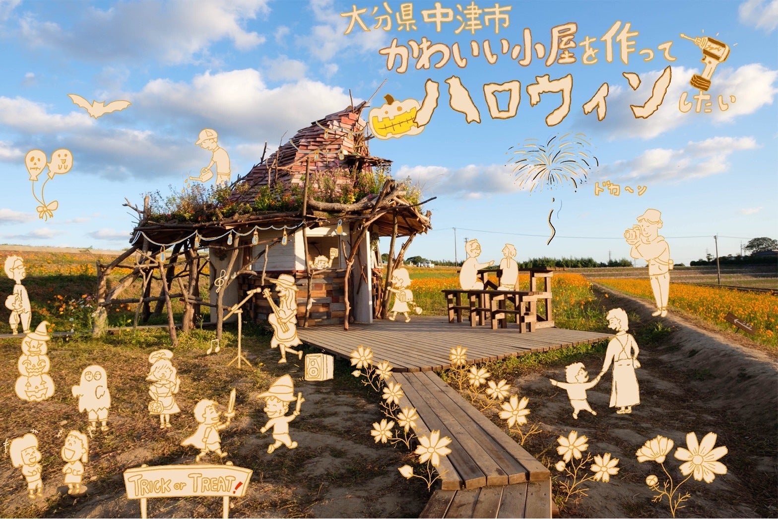 コスモスとかわいい小屋の空間で、ハロウィンイベントを楽しんでもらいです!