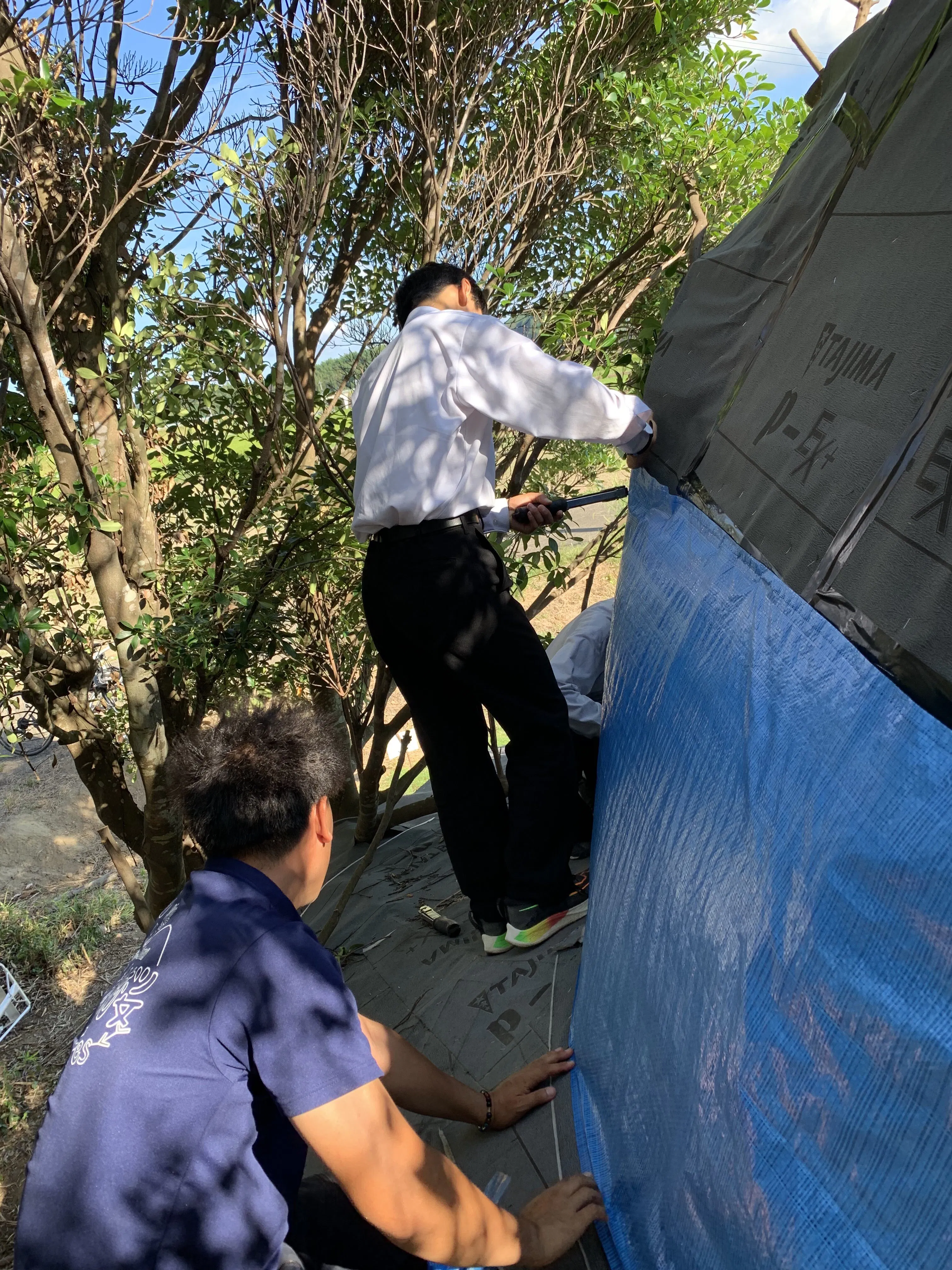 差し入れでジュースを頂いたり、知り合いにチラシを配ってくれたり、中学生は屋根の防水処理を手伝ってくれました!