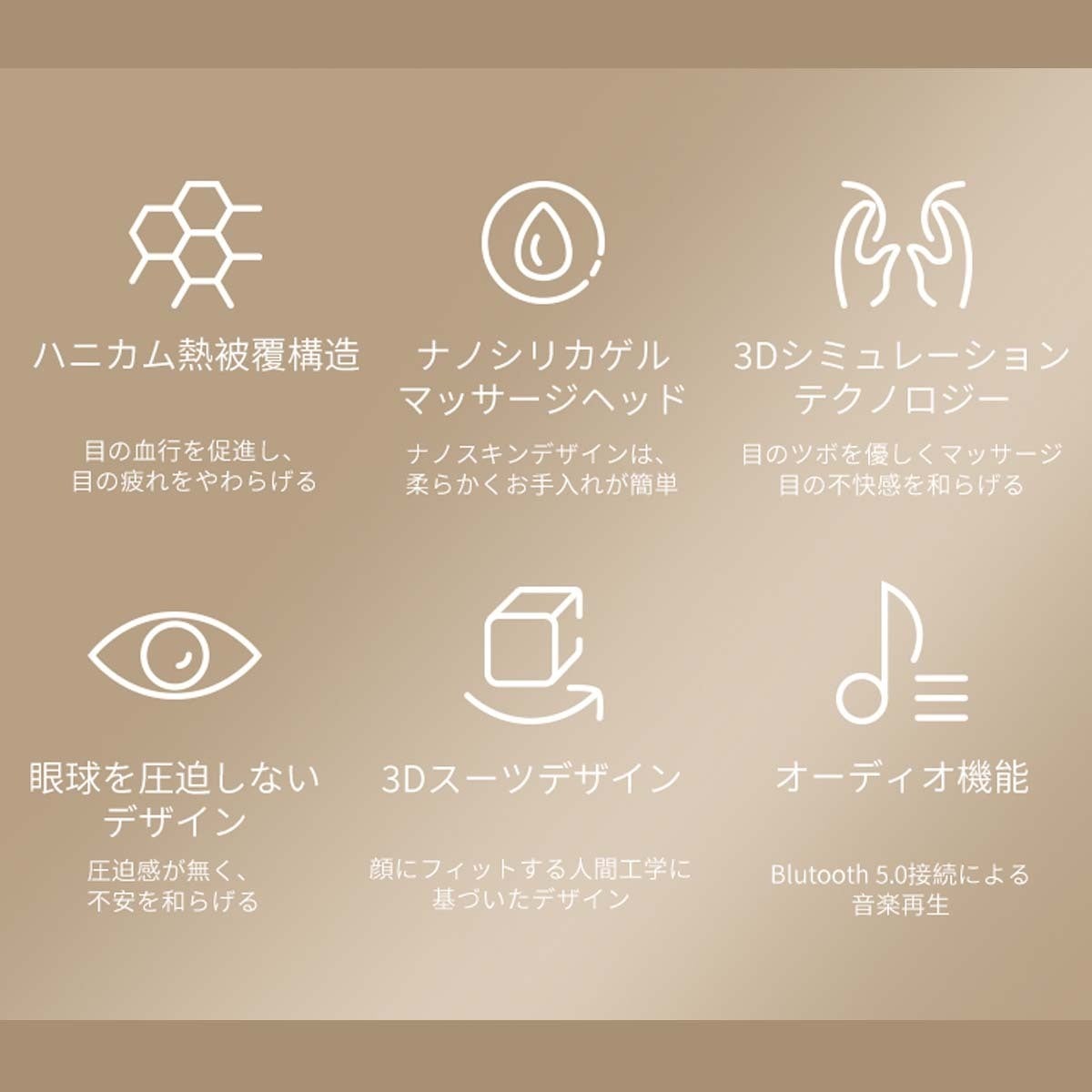 このアイマスクは、目の輪郭とさまざまなツボの分布に合わせて慎重に設計されています。伝統的な中国に基づいて、目の周囲に分布する複数のツボを同時に刺激することによって、目を優しくケアできます。