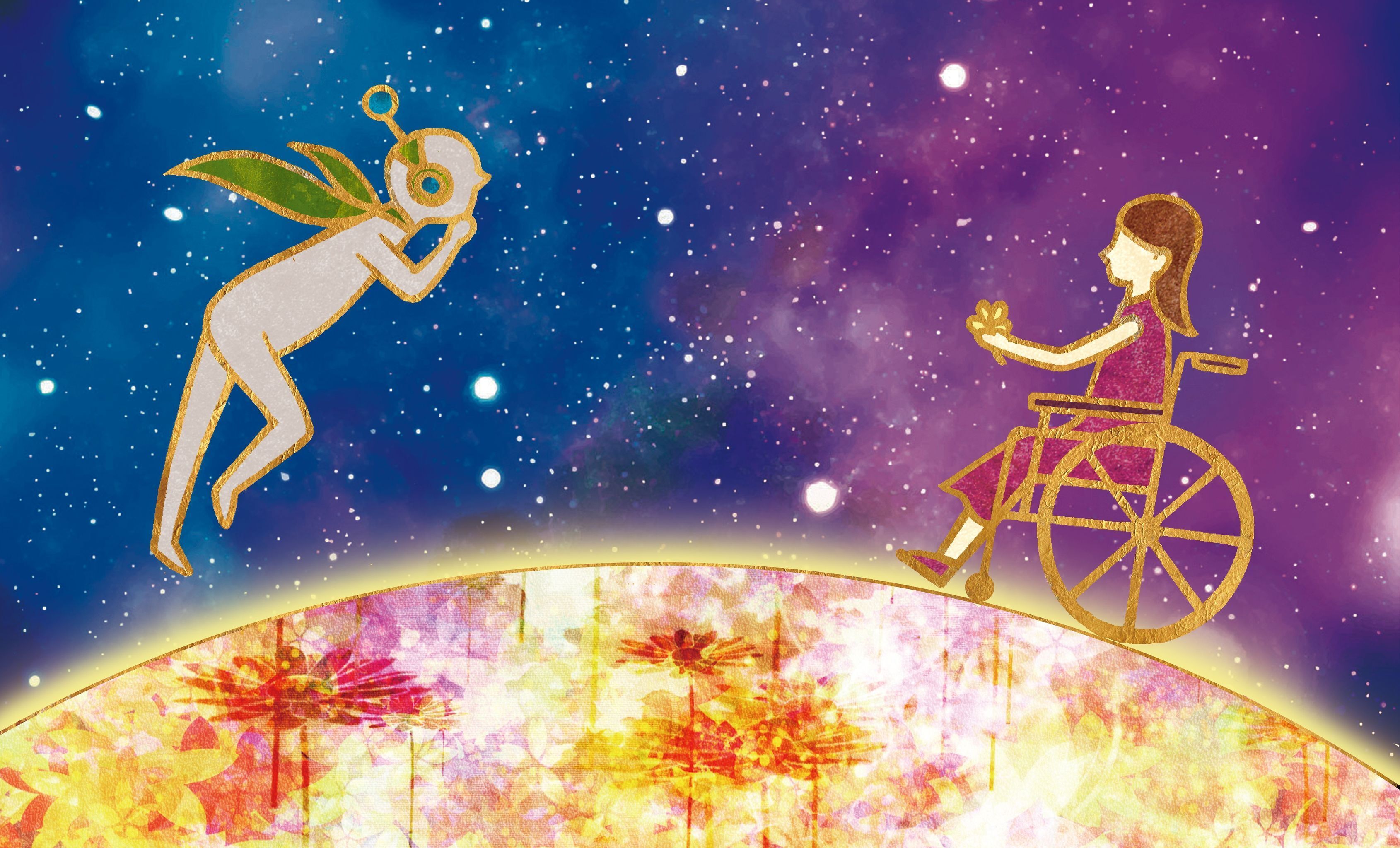 宇宙人ノアがチキュウに降り立ち、チキュウに住む車椅子の少女アコヤ(小澤綾子さん)に出逢う。