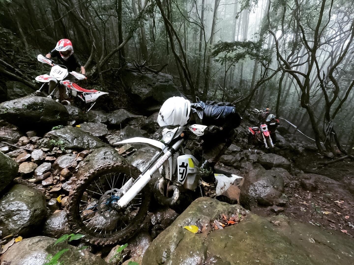 基本は自然が相手で、当然レース(勝負)なので、自身のテクニックはもちろん必要ですが、HEDはレースではとても珍しく、ライダー同士のヘルプ(助け合い)が許可されています。