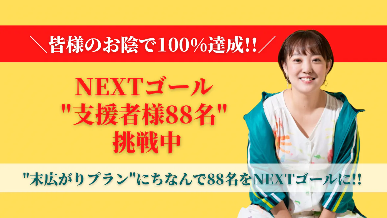 このプランにちなんで、88名の方に支援頂けたら縁起がいいと思い、NEXTゴールとさせて頂きました。