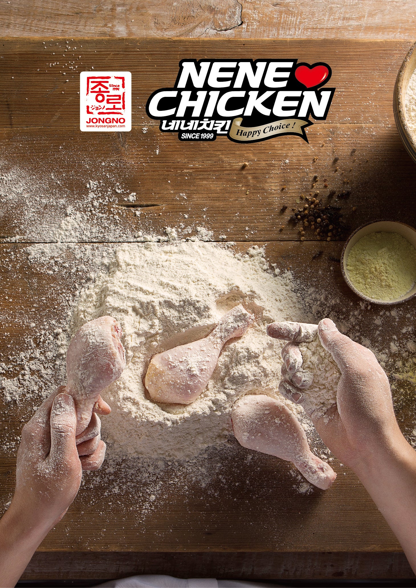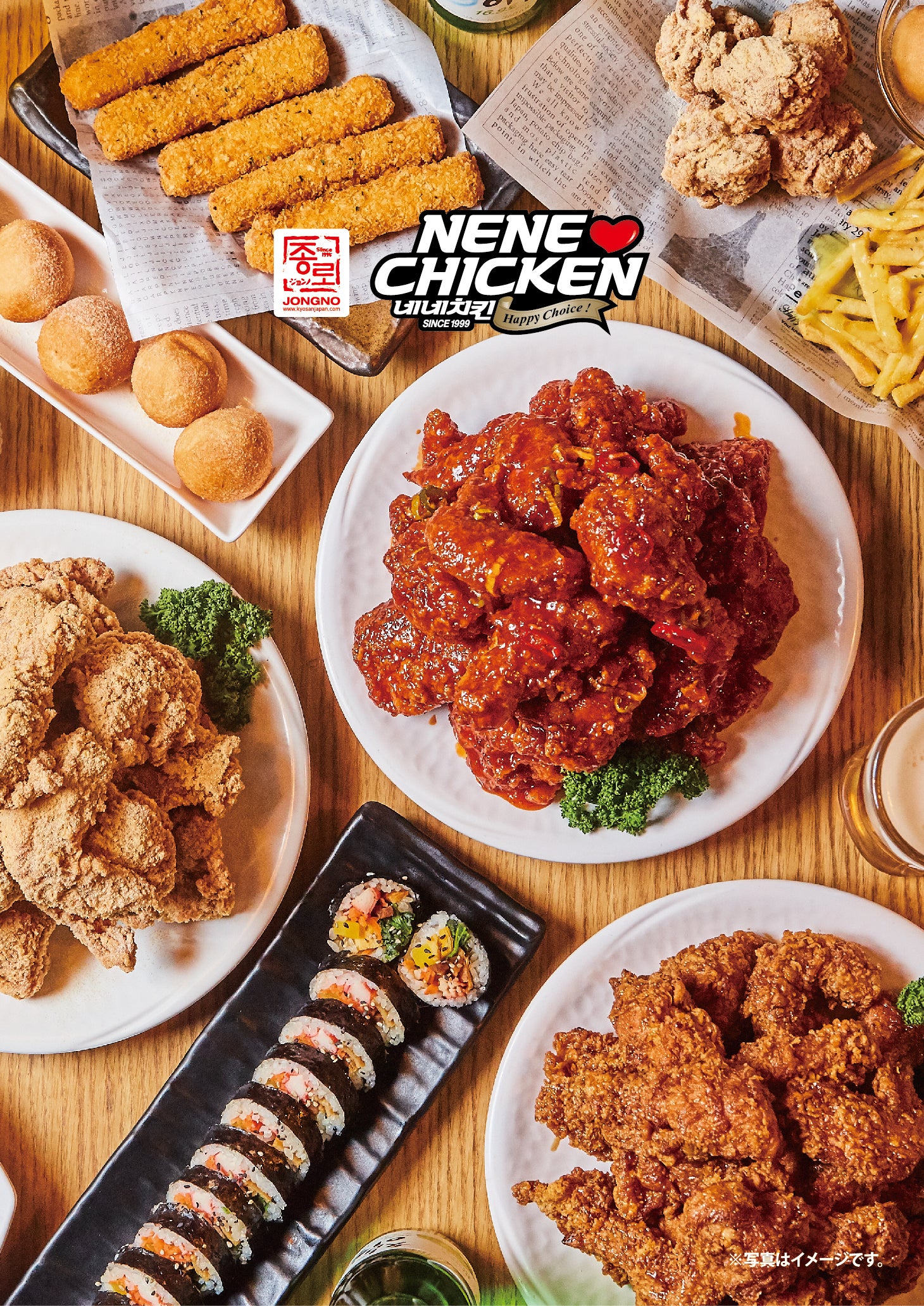 全世界に1,300店舗展開中の韓国チキン代表ブランド「ネネチキン」は、7種類の韓国チキンに加え、韓国料理やサイドメニューも提供いたしております。ネネチキンでは「本場の味」に拘っております。チキンのソースは現地韓国で製造し輸入しており、現地韓国と同様の調理方法で提供させていただきます。