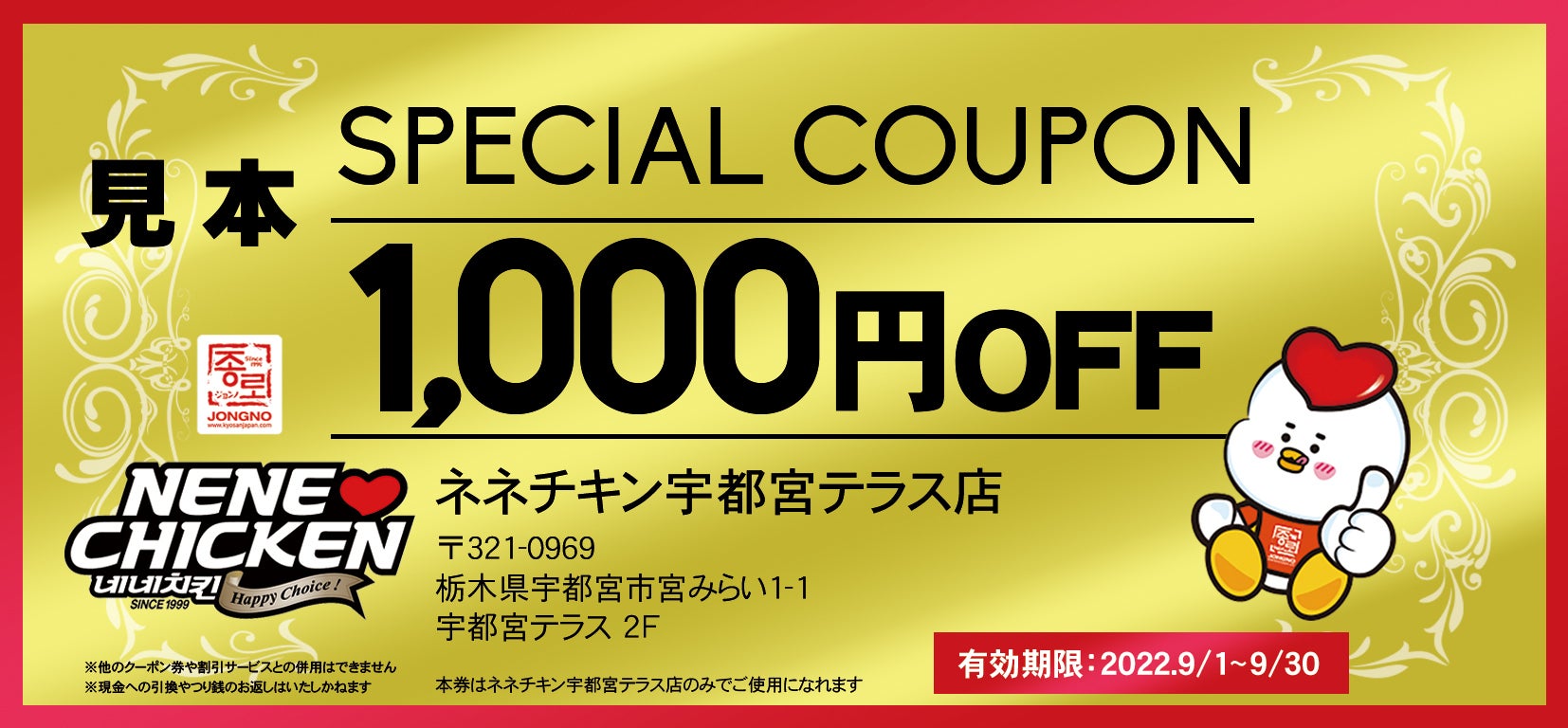 ・1,000円クーポンチケット3枚(有効期限2022年9月1日~2022年9月末日)計3,000円分
