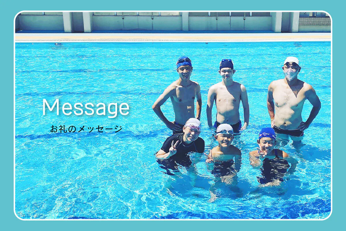 お礼のメッセージと39EnjoySwimmingチームオリジナルスポーツタオルを送らせていただきます。