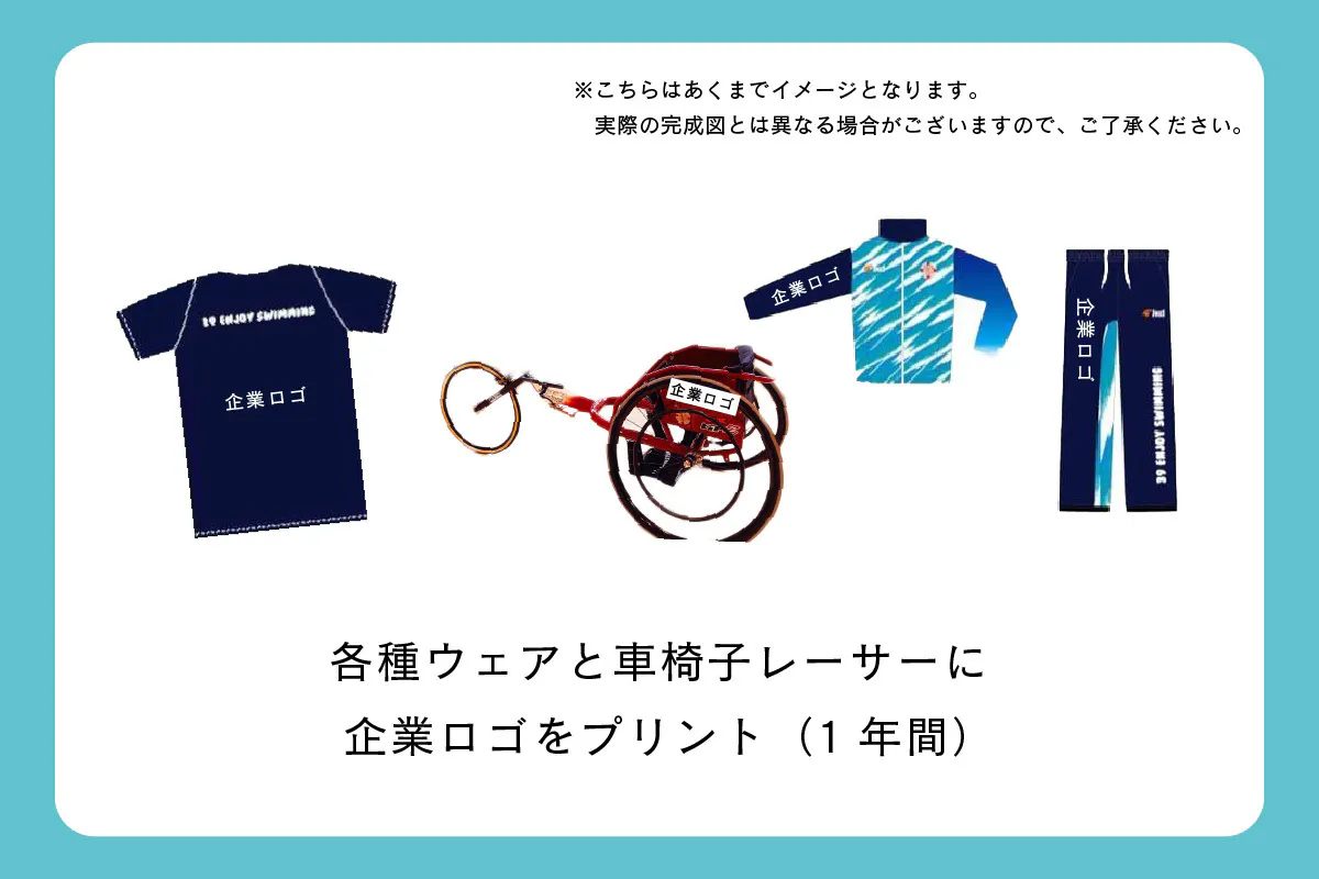 ・各種ウェアと車椅子レーサーに企業ロゴをプリント(1年間)