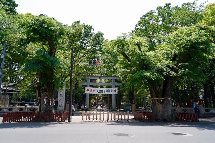 けやき並木を南に進むと、「大國塊大神(おおくにたまのおおかみ)」を祀る大國魂神社があります。