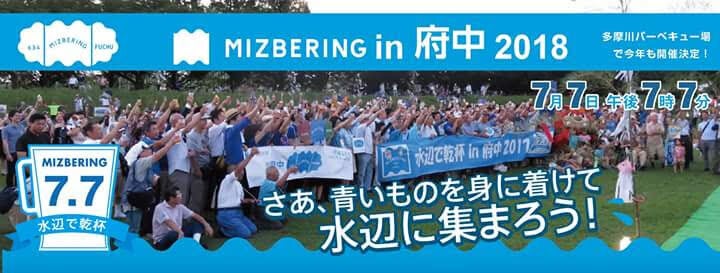 府中とミズベリングとの出会いは、2016年です。京浜河川事務所から周辺市へミズベリング参加への呼びかけがあり、高野府中市長が応じたことが始まりです。2016年6月11日の市長コラムで市長はこう書いています。【「ミズベリング」という言葉 に出会いました。(中略)すなわち、環境保全とまちづくりを水辺で進めようとするものです。本市の多摩川沿岸は約9キロメートル。与えてくれた恵みと今なお残る魅力はかけがえがありません。(中略)7月7日午後7時7分のタナバタイムに青いものを身につけて水辺に集合し乾杯をしようというアクションです。私は郷土の森第一野球場南の水辺に行ってみようかな。府中市長 高野律雄】2016年の水辺で乾杯では、市役所関係者を中心に多摩川沿いに集まり乾杯をしたそうですが、市民には広く知らされず、それを残念に思った市民が、「7月7日の水辺で乾杯の機会を通じて、もっと府中の水辺の魅力を市民が体感できるイベントに企画を膨らませよう」と、いわば「勝手連」のように、実行委員会が立ち上がりました。(「府中でもミズベリングを盛り上げよう!市民の会 」)