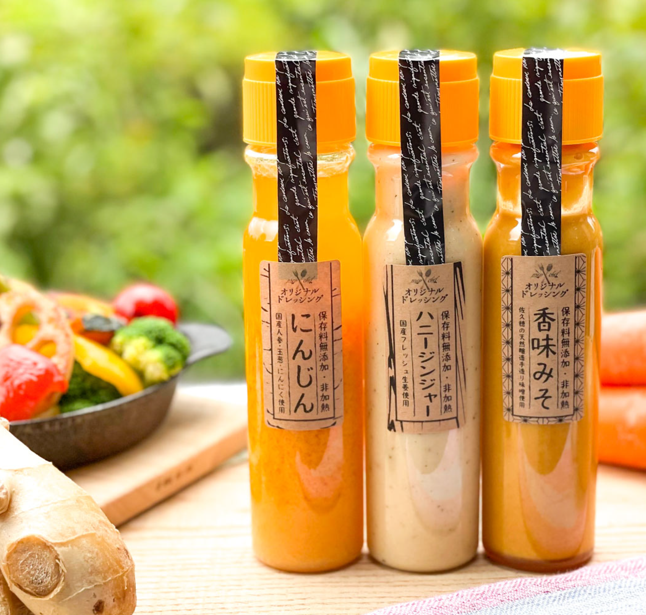 act634府中のミズベリングを始めとしたプロジェクトにいつも協力をいただいているカフェ オレンジブーツ(Cafe Orange Boots)を経営するサニーワークス オリジナルドレッシング3本セット。