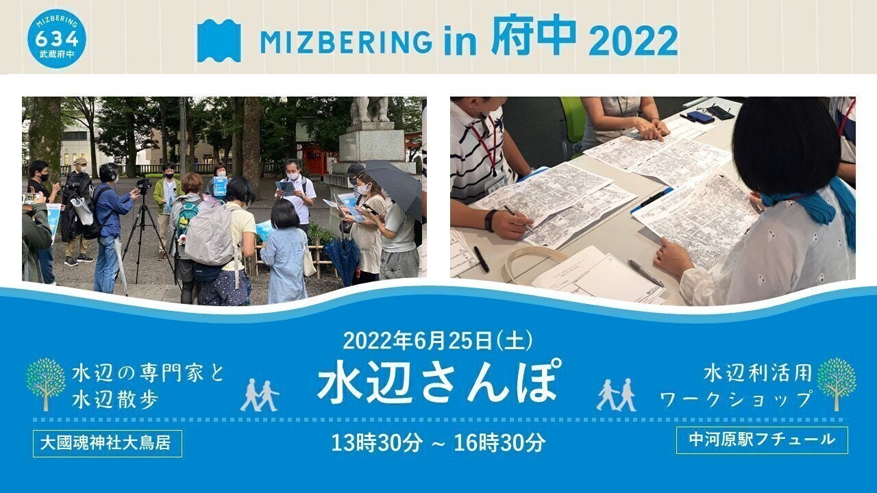 2016年から、「7月7日夜7時7分に全国一斉水辺で乾杯」という国土交通省が呼びかけているソーシャルアクションを府中市と市民団体が協力して実施してきました。かつて府中多摩川では、鮎の投網漁や騎馬戦、川遊び、染物の洗い等、町中では崖線からの湧水があふれ稲作が盛んでした。多様な生物にもあふれてました。そんなかつての水辺の賑わいを失ってしまった今、次世代に繋ぐ水辺での過ごし方を新しく作つくり、水辺をもっと私達の身近なものとしていきたいという目的で、様々なイベントを実施してきました。2020年、2021年はコロナの影響でオンライン形式での開催となりました。今年は「ミズベリングウィーク」を6月21日(火)の夏至の日から7月9日(土)までと設定し、イベントを分散し、感染症対策にも配慮しながら、屋外で人と水辺・自然、人と人のつながりや体験の風を呼び戻すチャレンジを実施します。