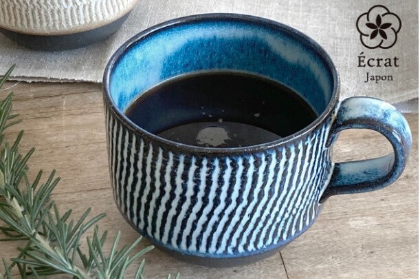 伝統陶器の黒土をモダンなフォルムで表現したカップ。