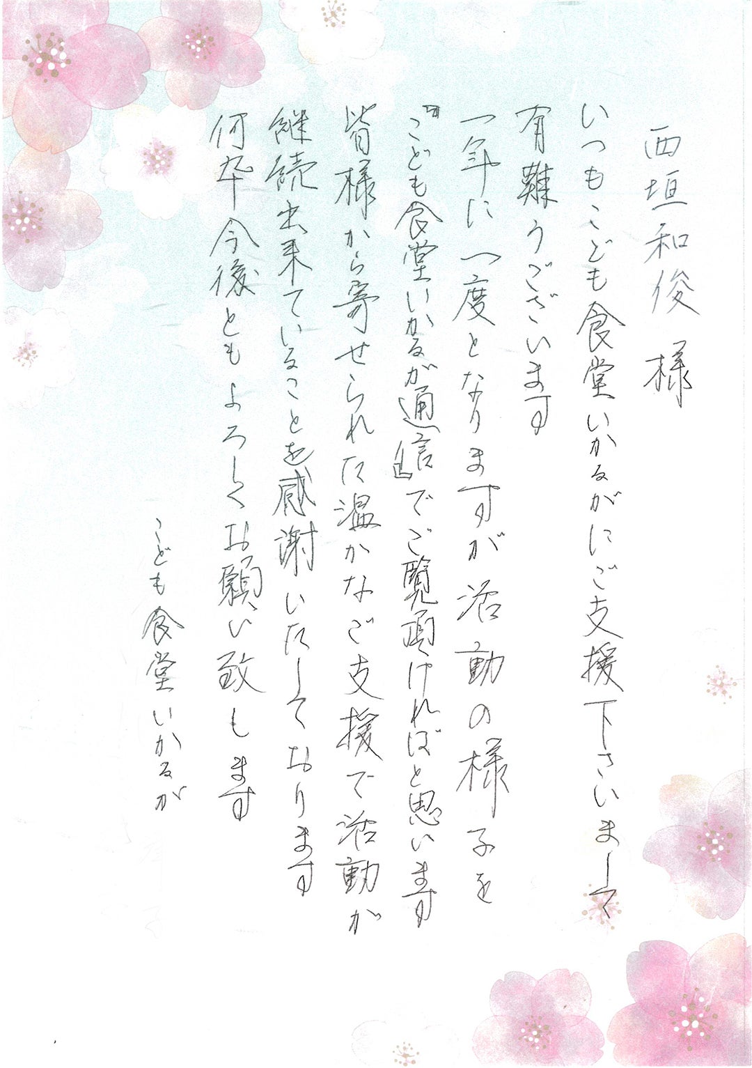 支援先の子ども食堂さんからのお手紙