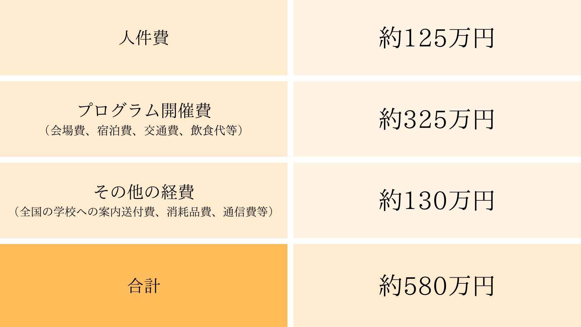 全国から集う70名ほどの参加者に対し、交通費等も含めたプログラム参加に係る費用はすべて当財団で負担しているため、毎年平均600万円程度の経費がかかっています。