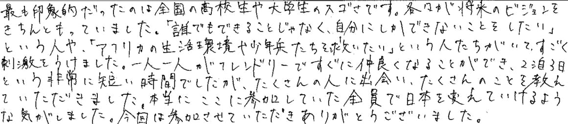 そのような学生たちがサミット参加後、このような感想を持っています。