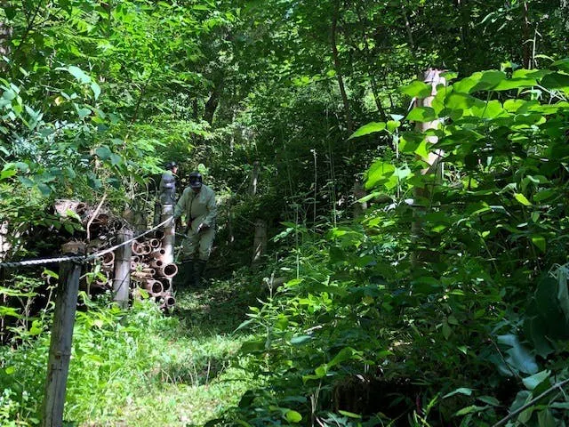 普段は草が覆い茂り、立ち入るには長靴が必要ですが、年に数回、地域の活動団体「とみつか未来塾」が草刈を実施しているおかげで、草刈後はスニーカーでも森の途中まで入ることができます。
