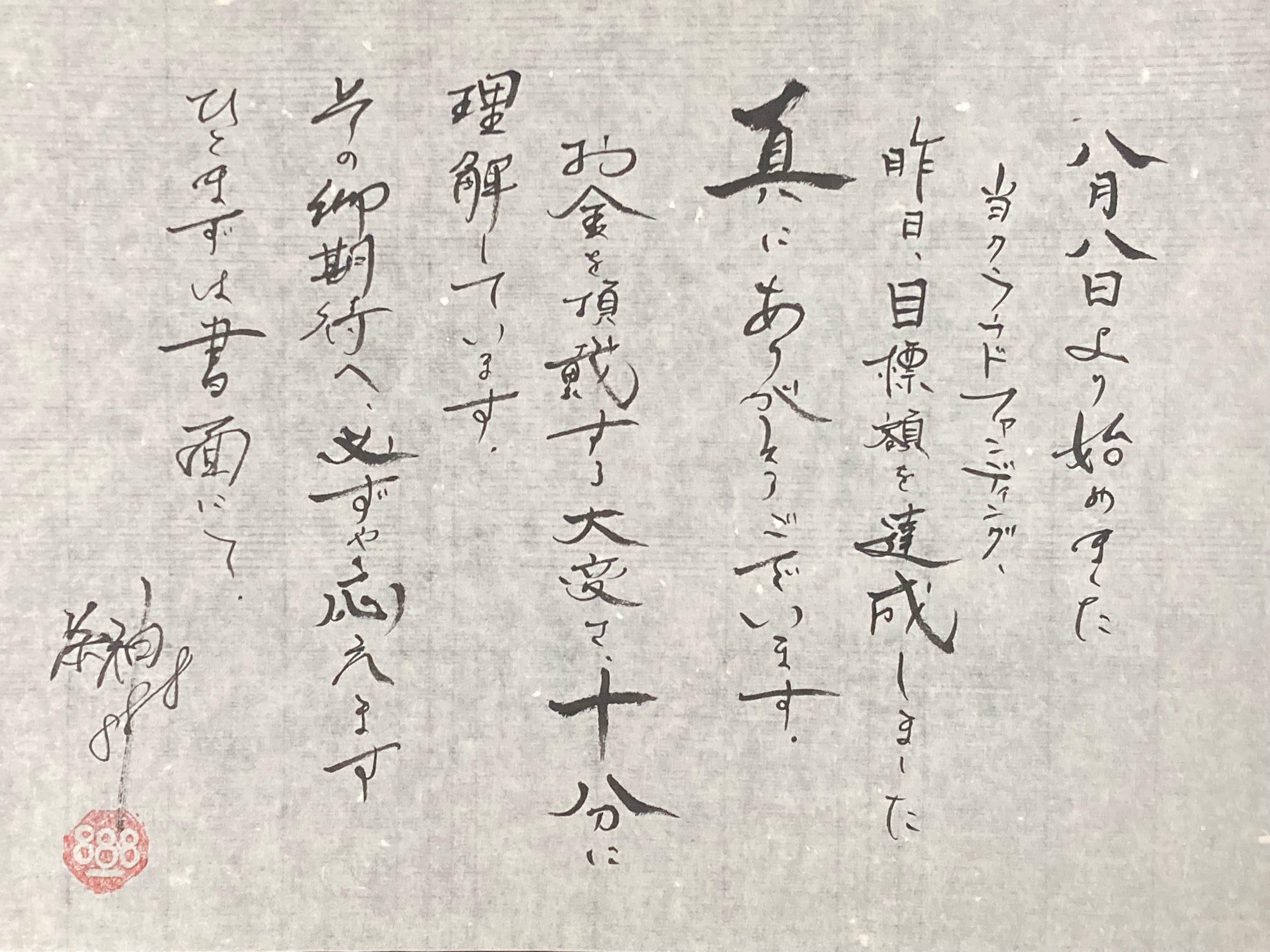 8月8日から開始しました当クラウドファンディング、昨日25日に