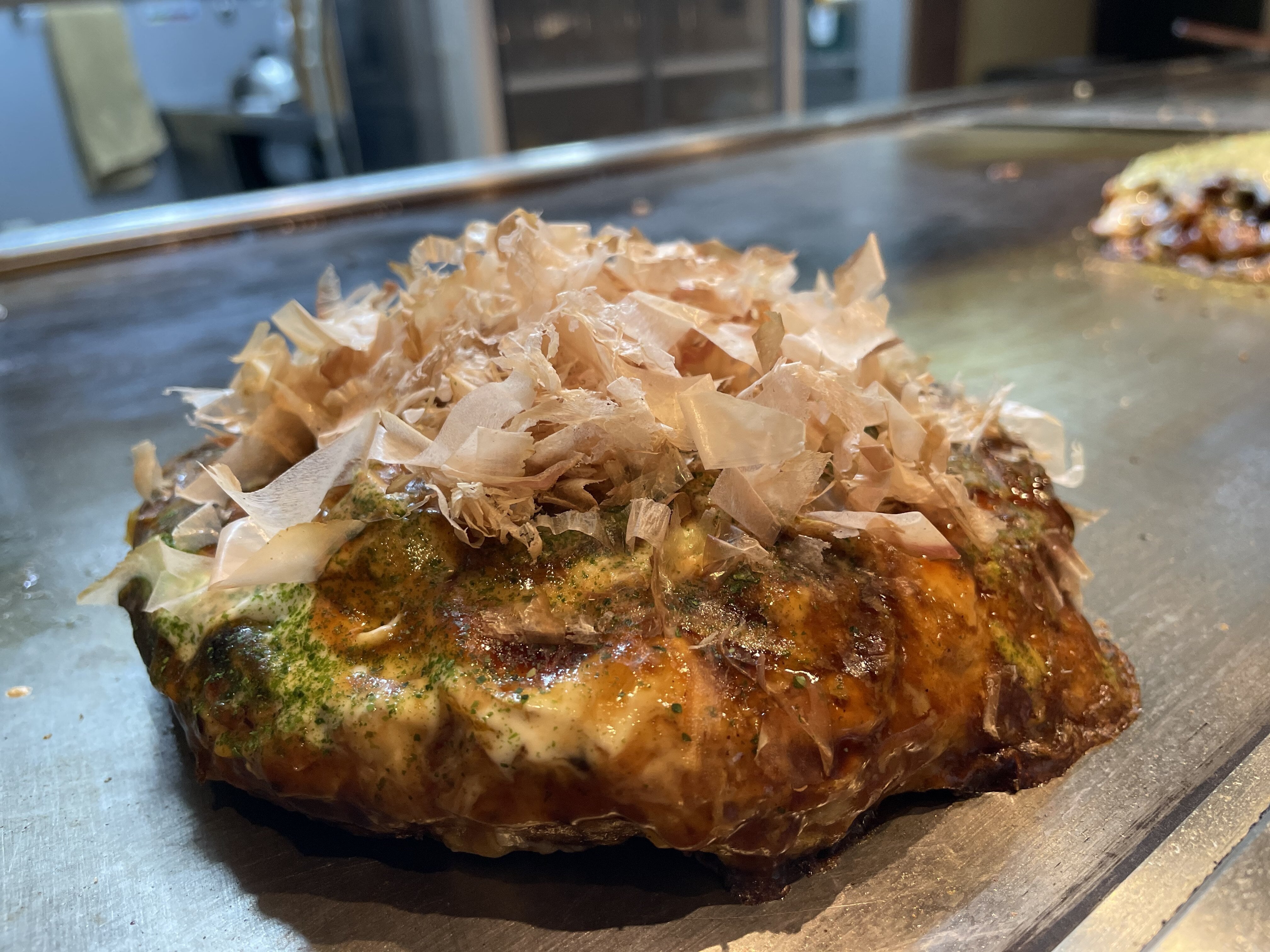 お好み焼きにしては端正な形。騙されないぞとひと口食べて、すぐさまふた口…今まで食べたものとは全く違う。確信しました。これは「粉もん」と呼んではいけないと。