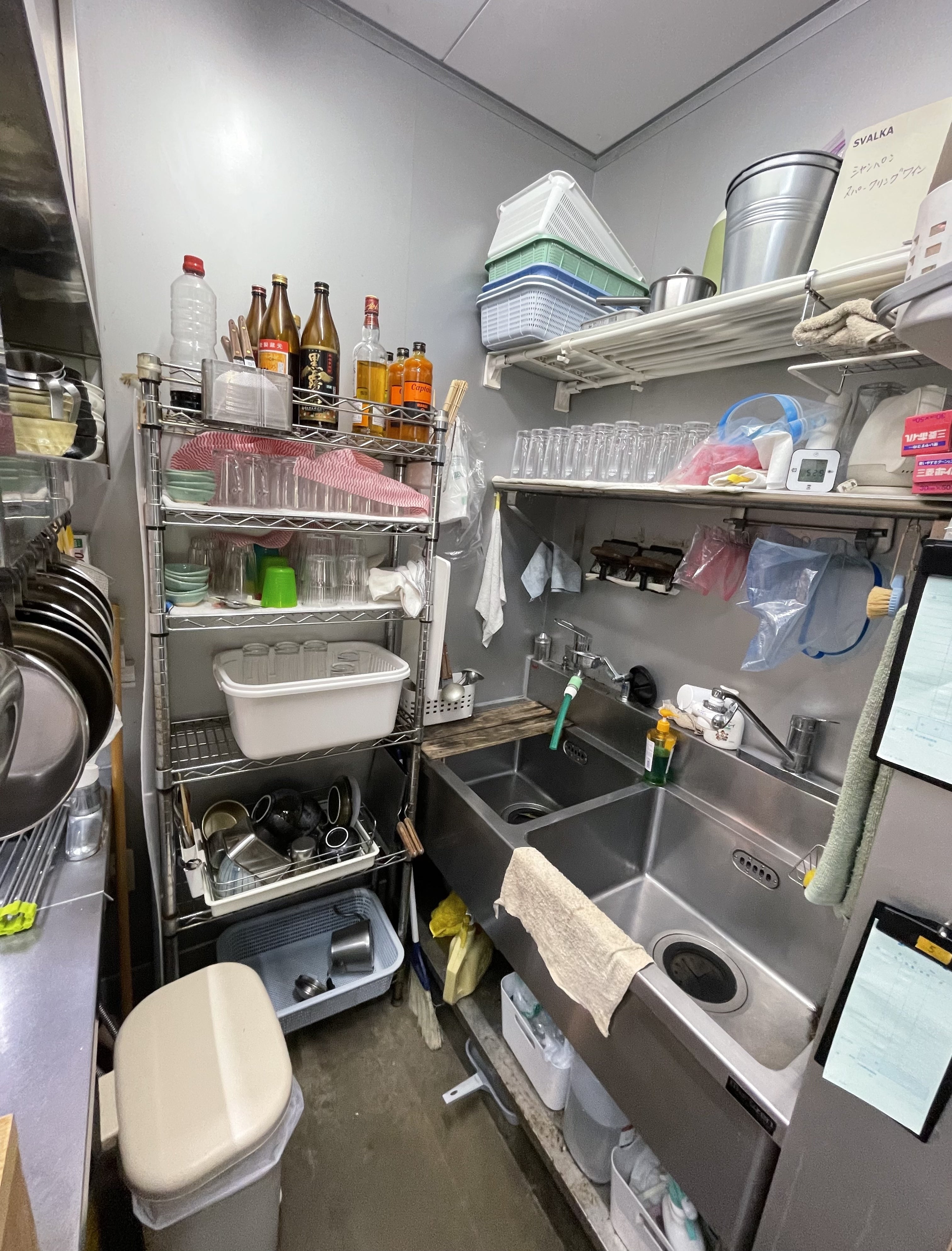 古民家を改修した当店は、建物の構造上の関係等で厨房の広さに余裕が取れず、また当時の建築予算を考慮して飲食店では不可欠な食器洗浄機を設ける事が出来ませんでした。