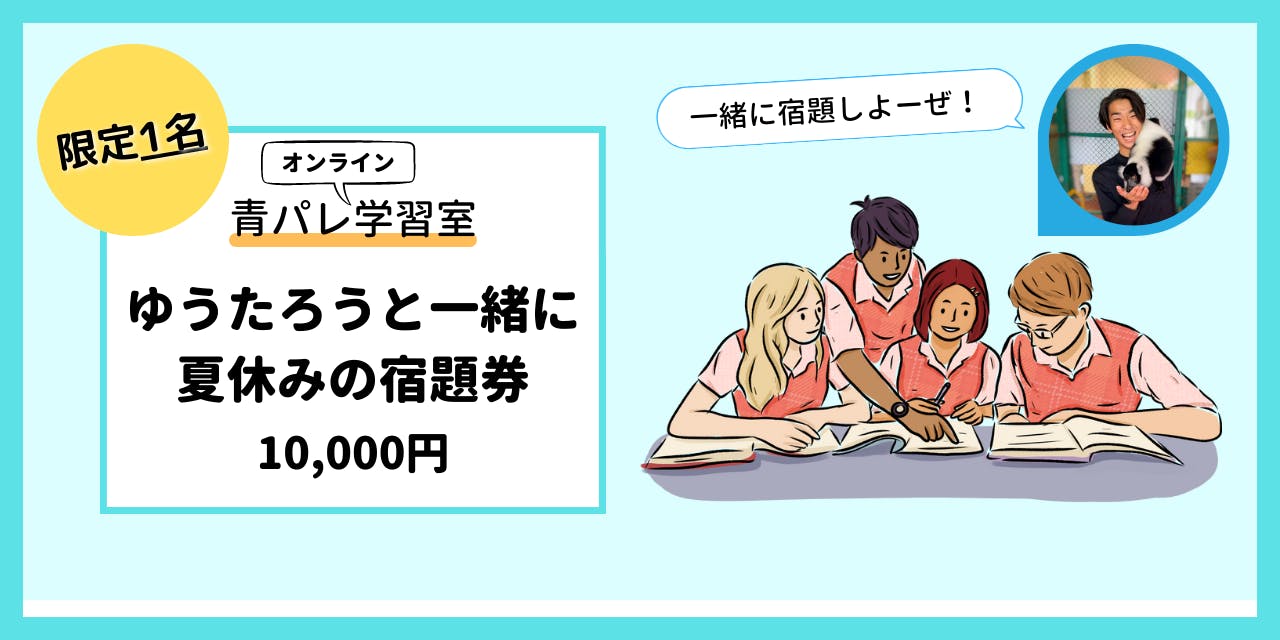 2022/07/15 22:51リターンに『ゆうたろうと一緒に夏休みの宿題券』を追加しました!※追加のリターンは時間の短いチケットになります。遊びの天才と一緒に勉強をできるチャンスは今しかないかもしれないので、この機会に是非このリターンでご支援いただき、お子さんにゆうたろうの勉強を体験させていただけると幸いです!よろしくお願い致します!! もっと見る