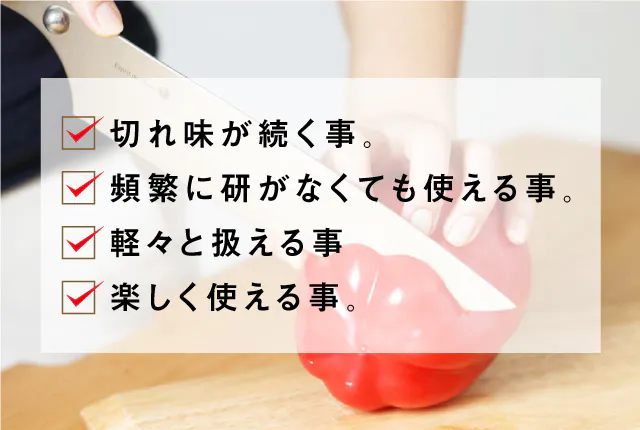 家庭で毎日使う包丁に必要なのは、「一瞬の切れ味」だけではありません。