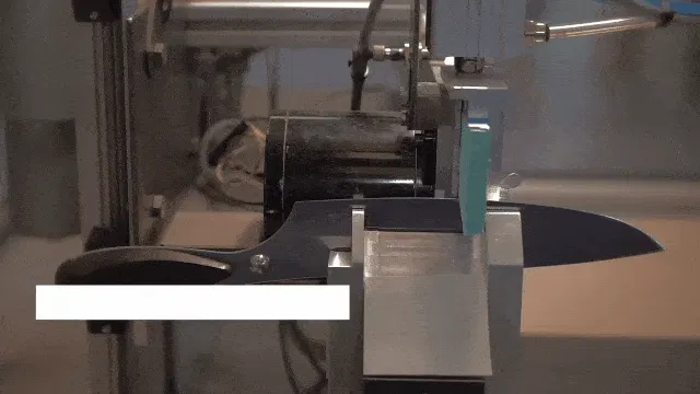 デグロンでは、世界でも数少ない、切断力をコントロールするための機械を備えた包丁メーカーです。