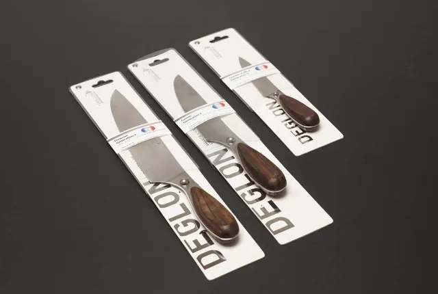 デグロンは今も進化を続けています。今や、食品業界(肉屋、魚屋、パティシエ、チーズメーカーなど)や、ホテル業界等でキッチンアクセサリーや高品質のナイフを探すためのリファレンスブランドになりました。
