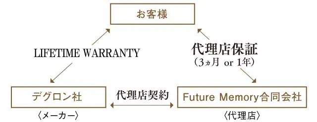 ・代理店によるサポート:代理店保証(3か月 or 1年間)。代理店契約解除後は、直接デグロン社へ問い合わせ可能