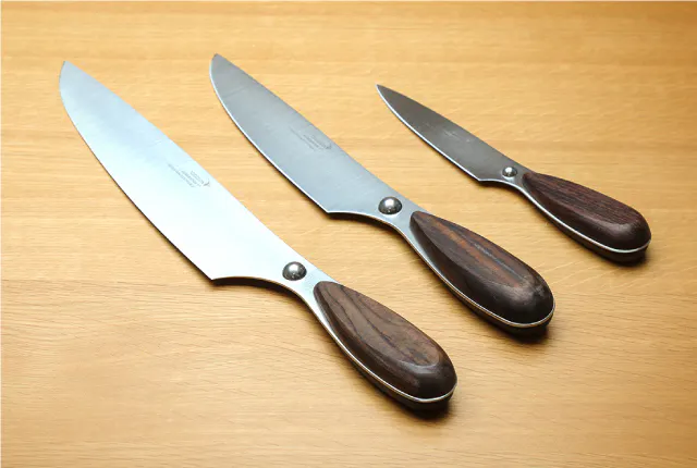 デグロンの包丁は、ブレードの素材にもこだわります。ブレードに用いる素材は、「強度」「耐食性」「柔軟性」などの面でバランスのとれたステンレス鋼を採用しています。