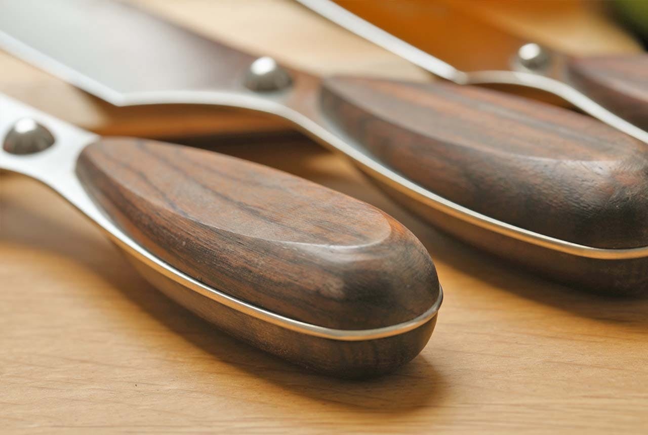 その見た目の美しさだけでなく、ハンドル部のふくらみは心地よい手触りで、手になじみやすく、刃先が長いシェフナイフでも安定したハンドリングを実現します。